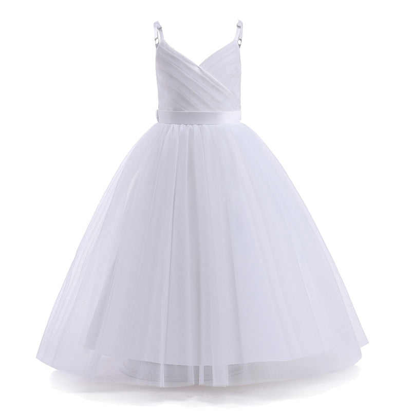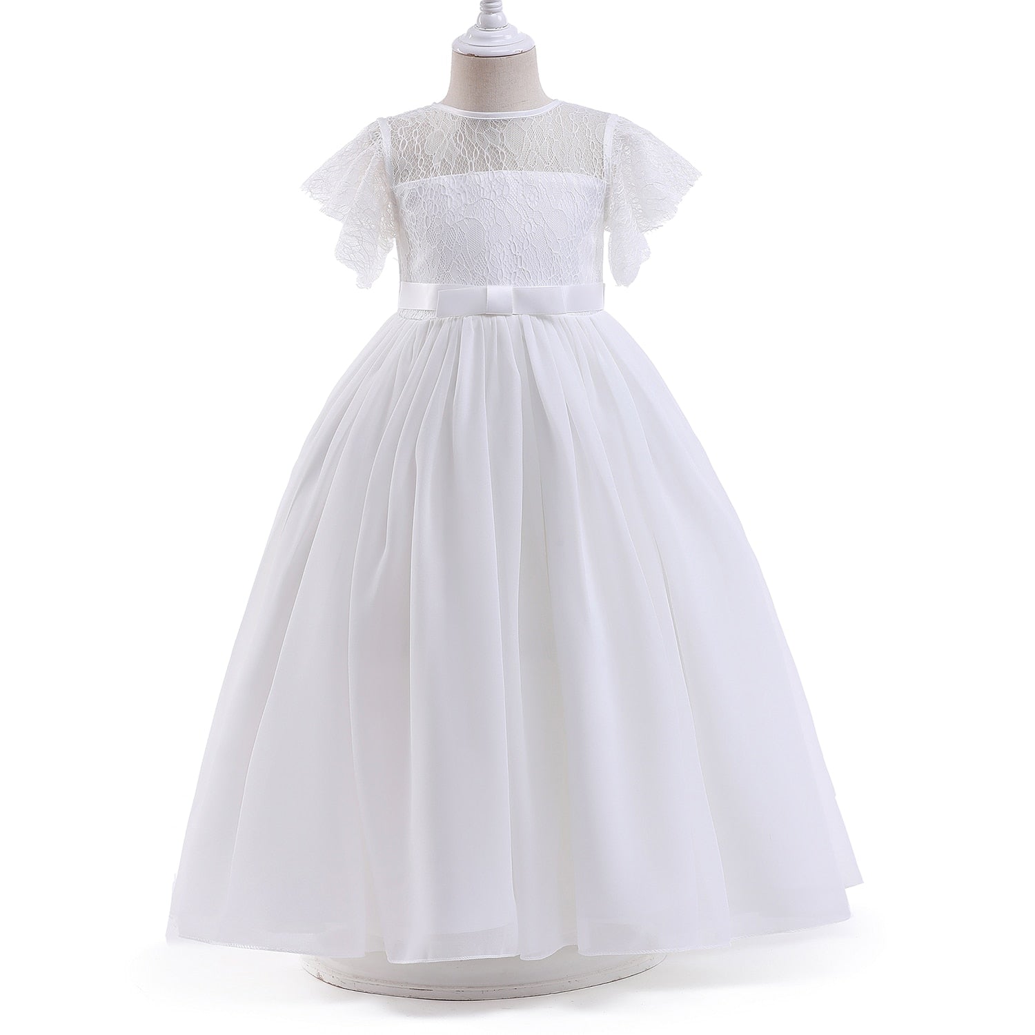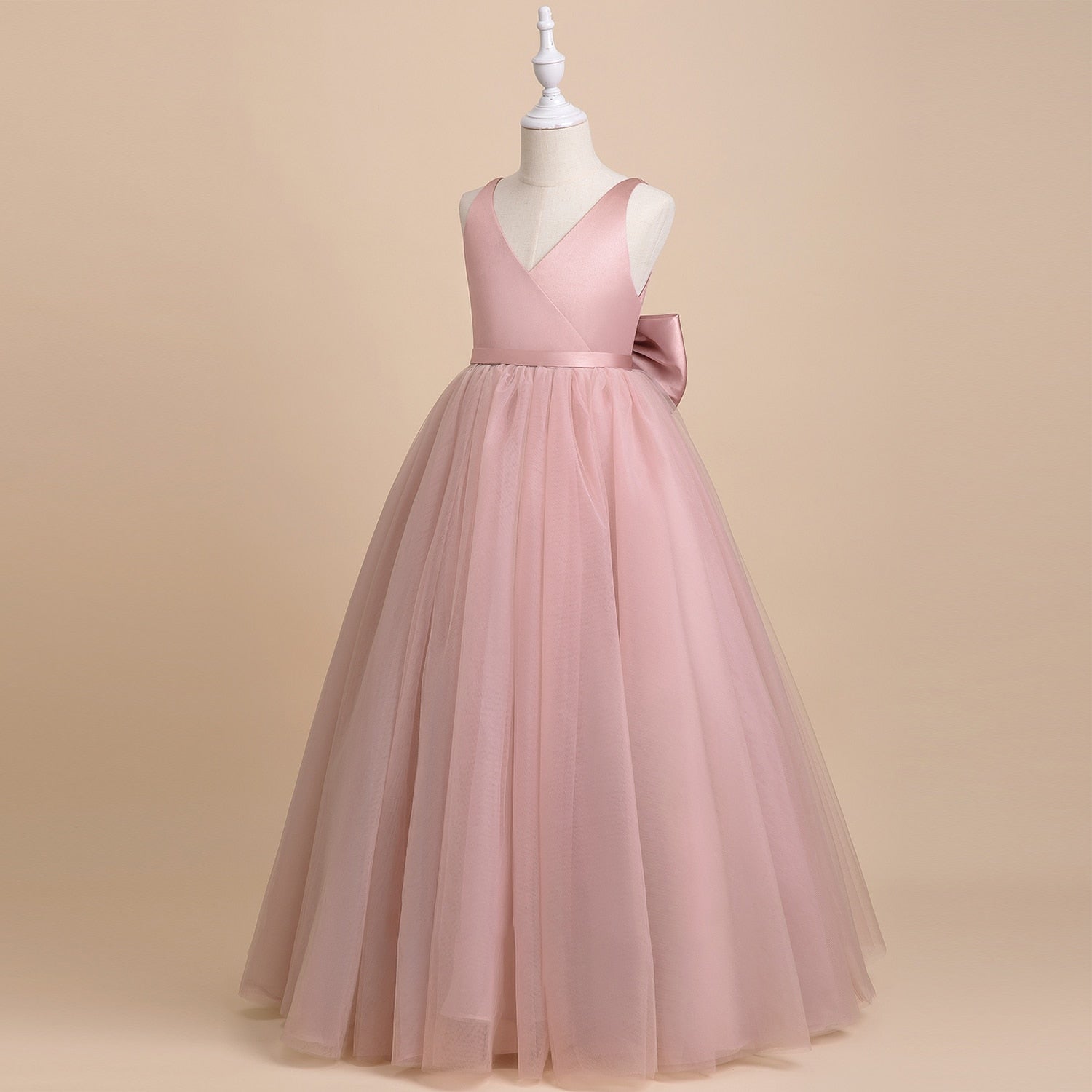 Elegant Girls Big Bow Dress Teen Girl White First Communion Ceremony Long Robe Clothing Kids Bridesmild Summer V-Neck Vestidos