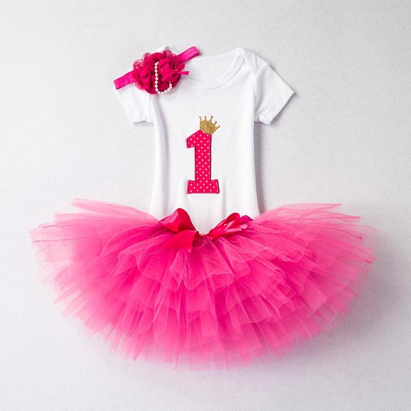 Flower Headband Short Sleeve Top and Tutu Dress Outfits 3pcs for 1 Year Baby Girls First Birthday Party Cotume Newborn Clothes