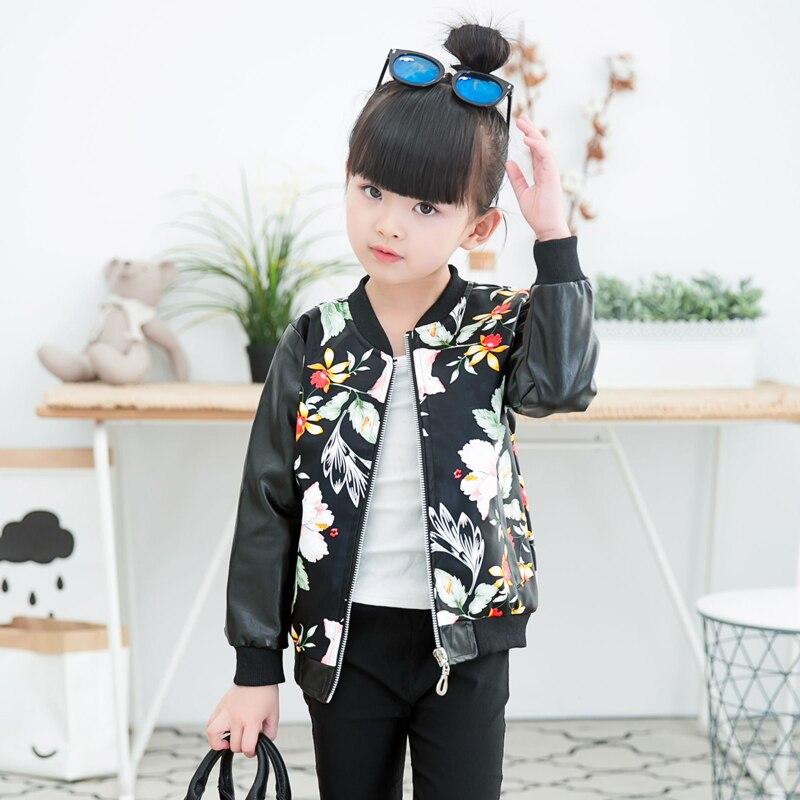 girls leather jacket PU jacket for children 2-7 year old fashion rivet belt, lapel leather, motorcycle Cool wild rivets outwear