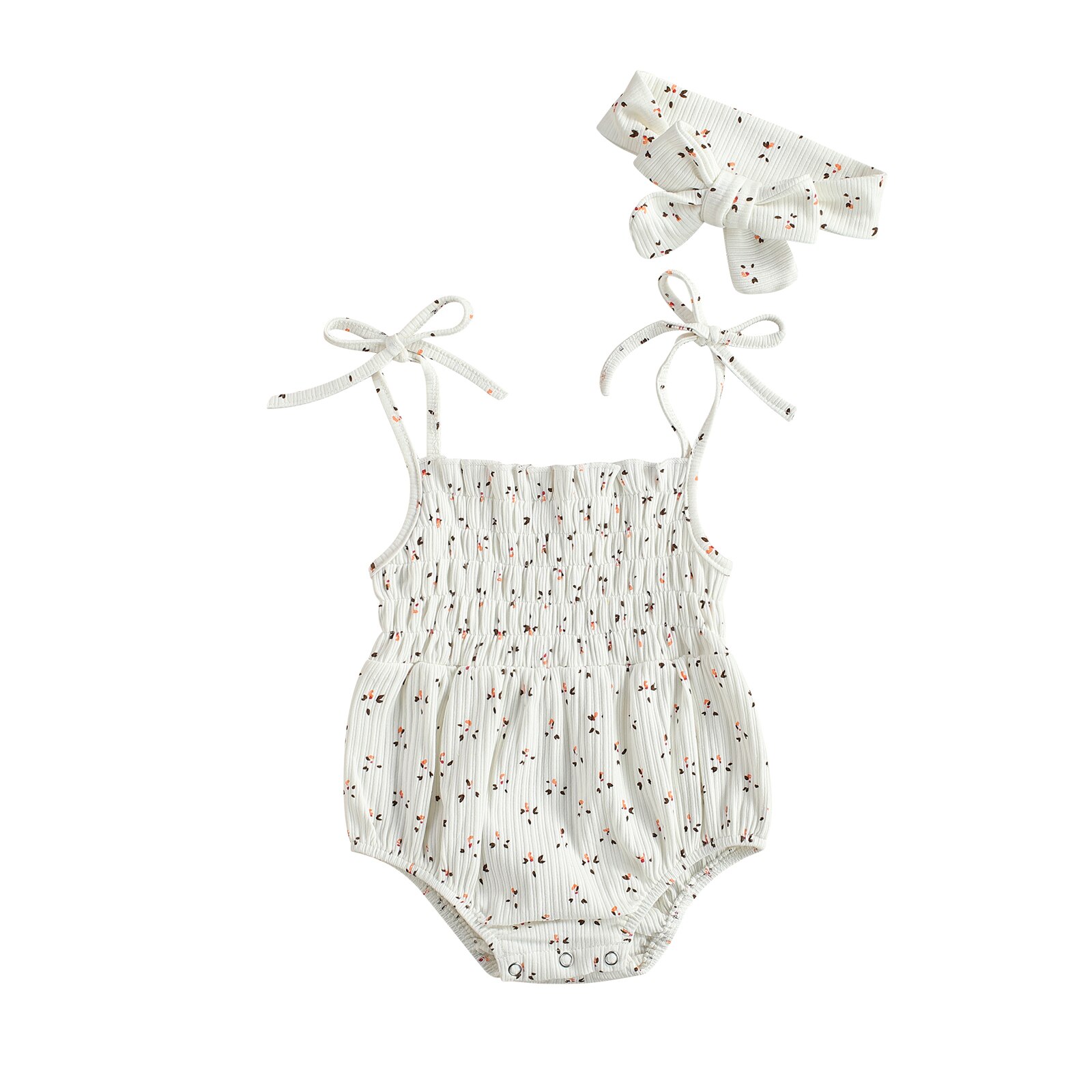 Infant Baby Girls 2 Pcs Elastic Outfits Suits, Sleeveless Floral Printed Romper + Bowknot Headband