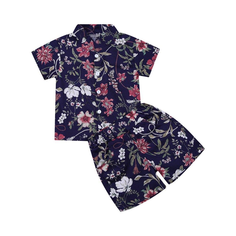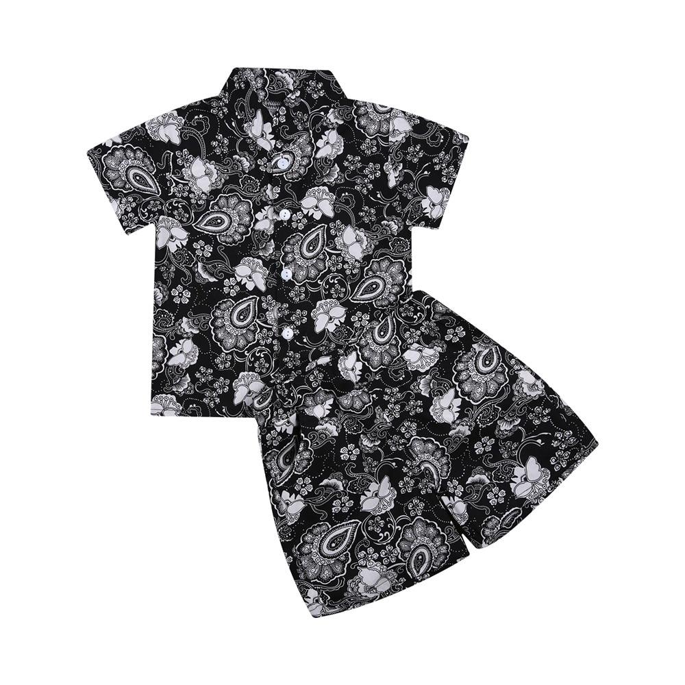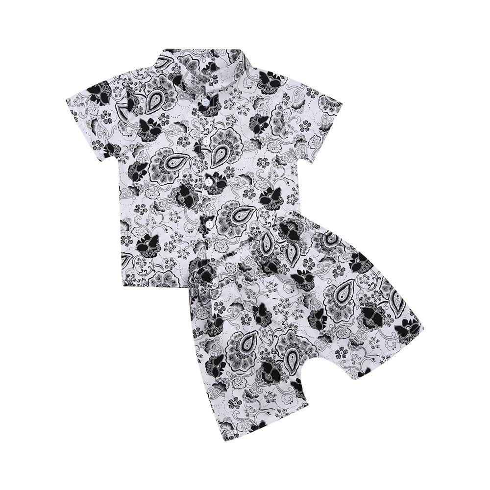 Infant Kids Boy Two Piece Set, Children's Lapel Short Sleeve Printed Shirt Elastic Waistband Shorts for Baby Summer