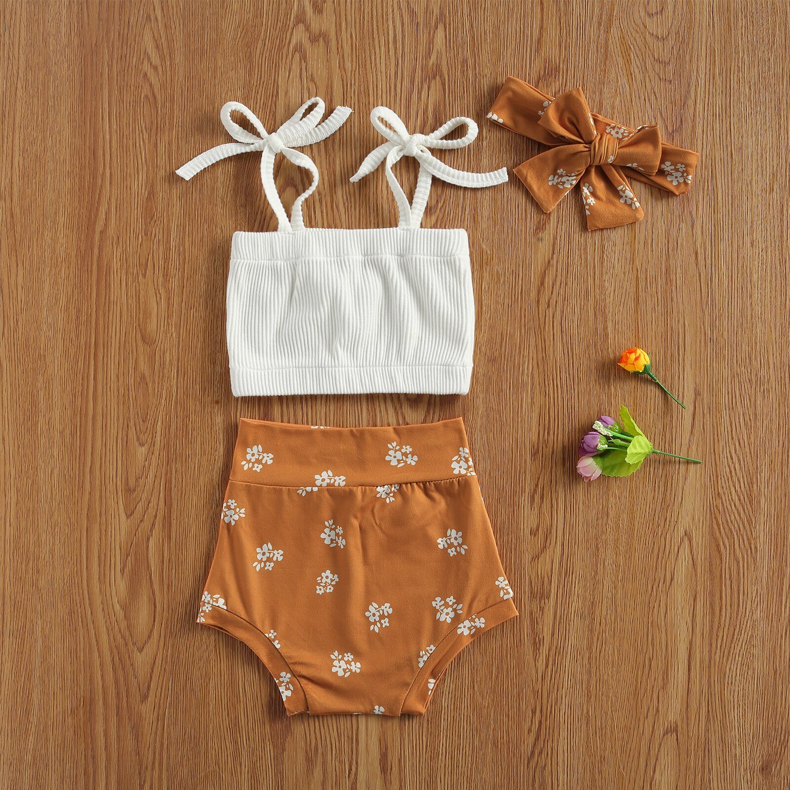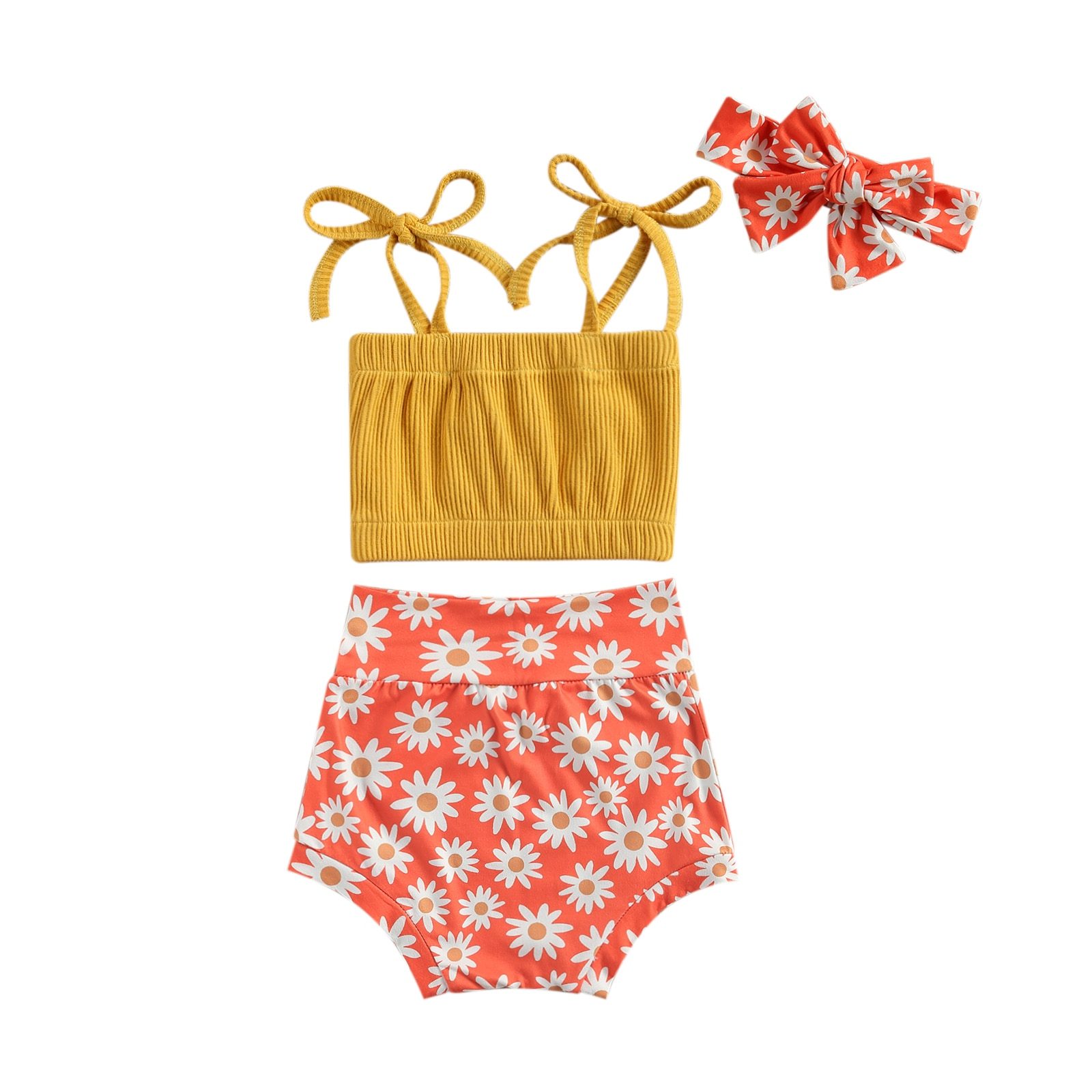 Infant Newborn 3Pcs Baby Girl Summer Outfits, Bow Tie Strap Ribbed Tank Tops + Short Pants + Headband Set