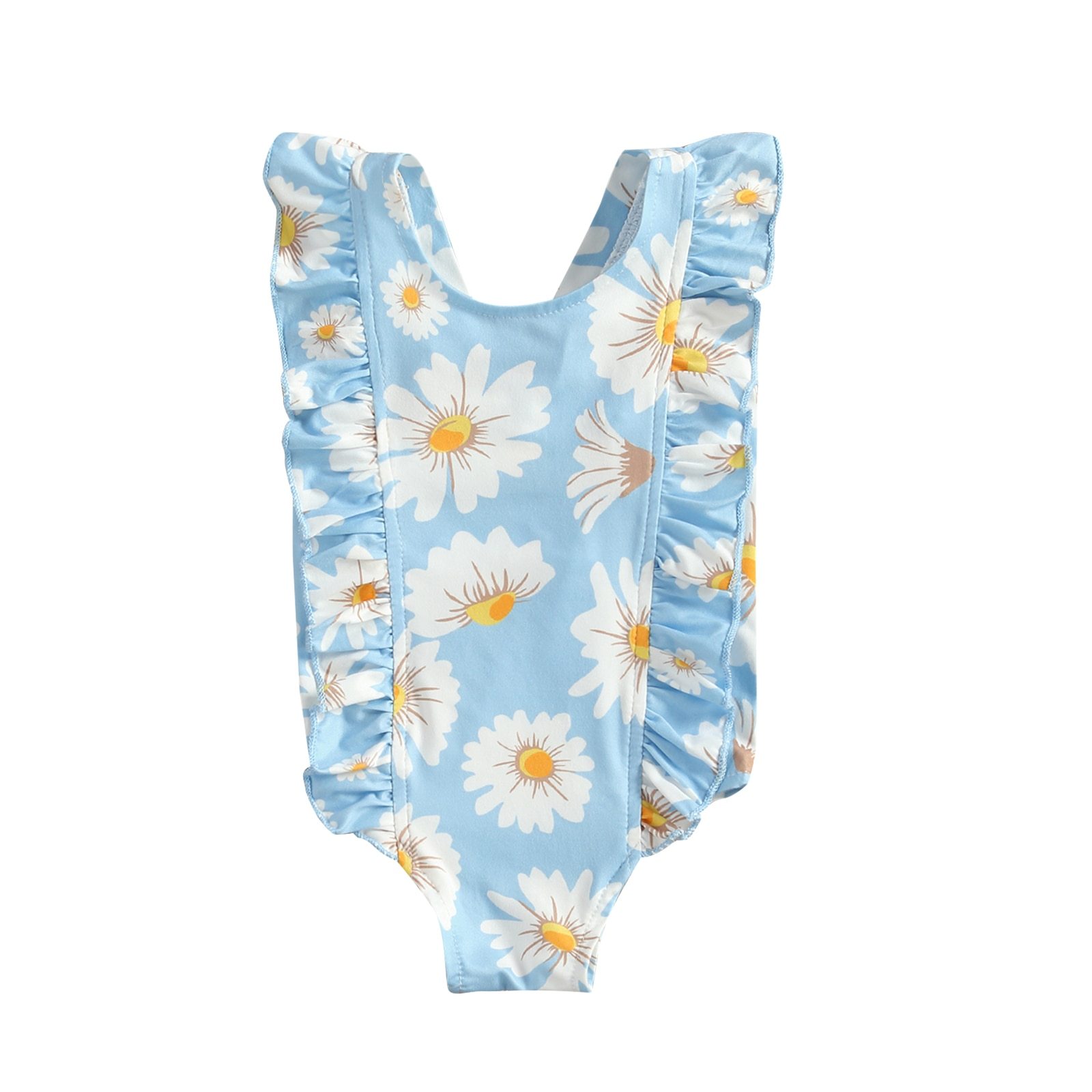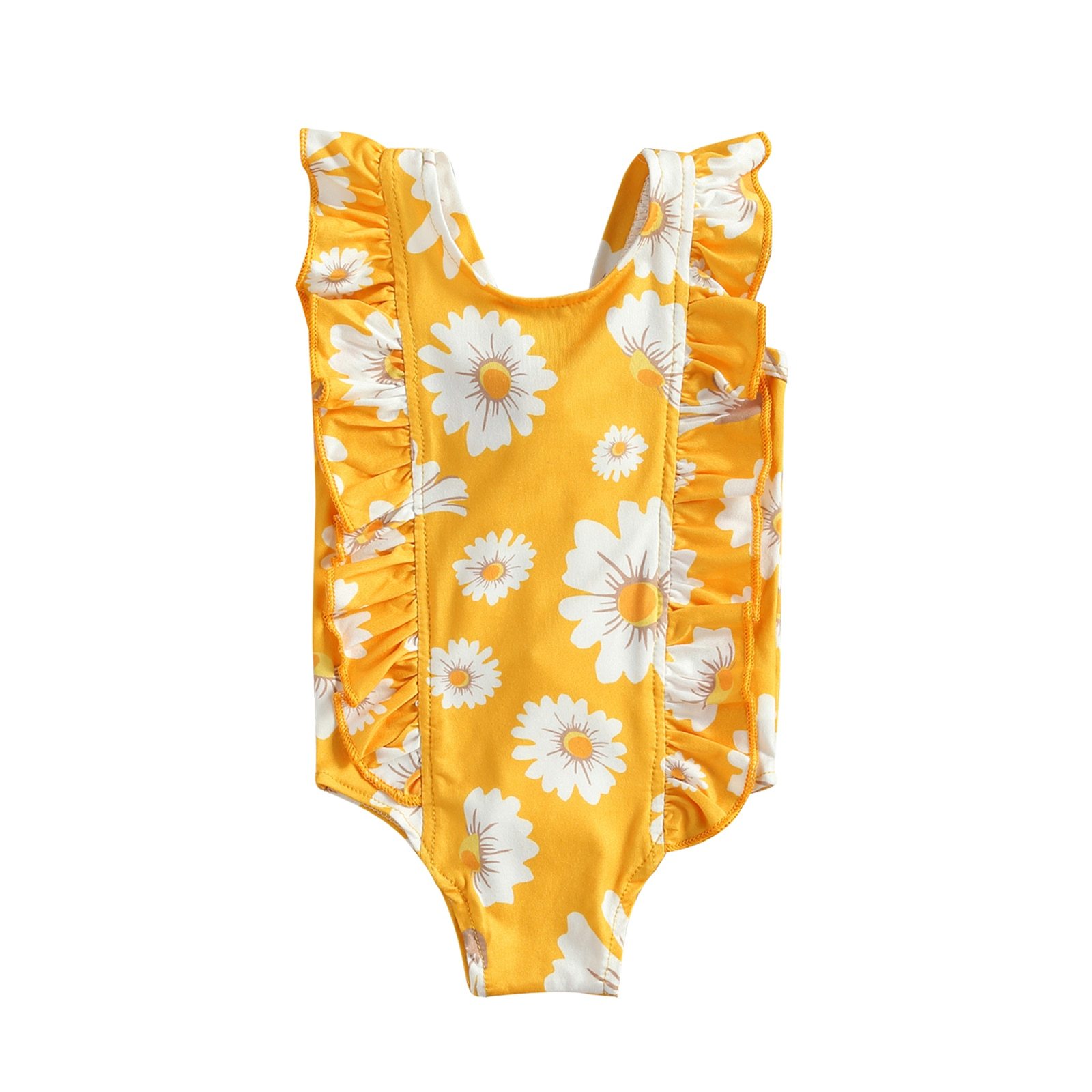 Infant Newborn Girl Sweet Daisy Print One-Piece Swimsuit Fashion Back Bandage Ruffles Sleeveless Swimsuit 6M-5T