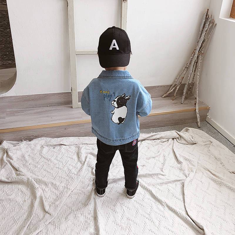 ins hot baby boys and girls denim jacket 1-9 years old kids denim jacket spring and autumn Printed cartoon dog baby girl coat