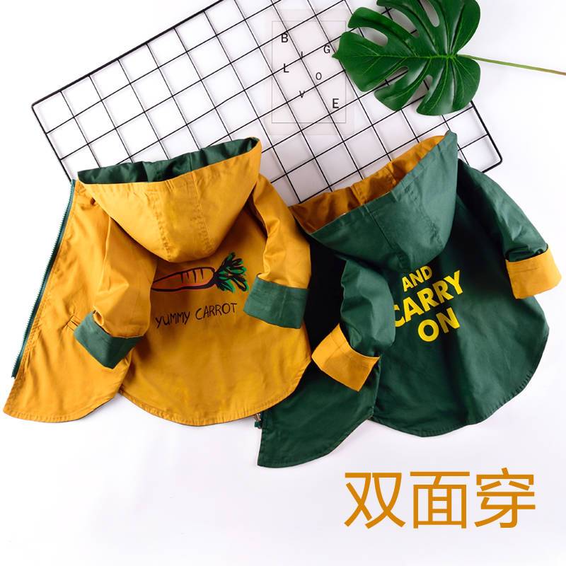 INS hot Baby boys Outdoor Jackets 2-11 year old Cartoon print radish spring and autumn jacket hooded boys trench reversible