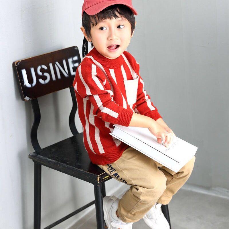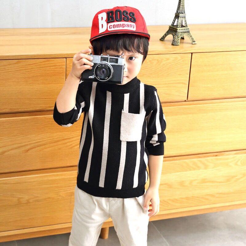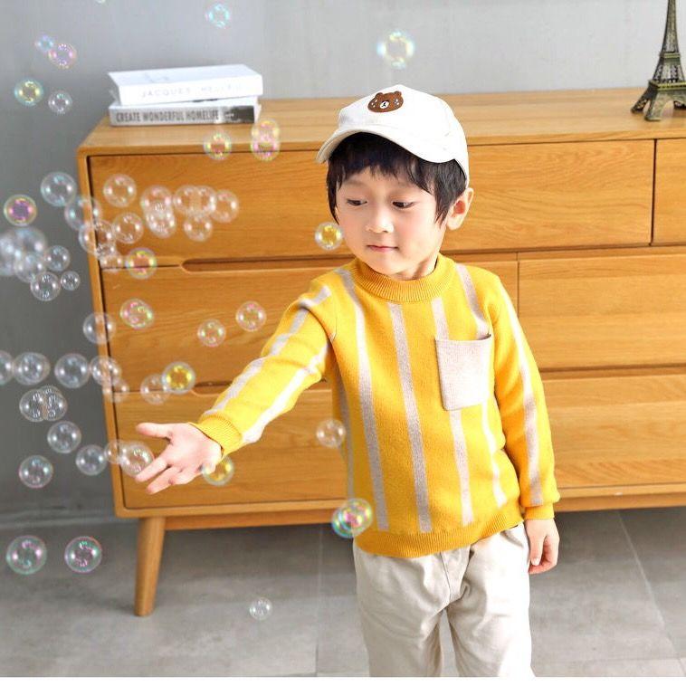 INS HOT Baby boys sweater 2-7 years old online celebrity children's sweater Chest pocket stripes boy clothes toddler sweater