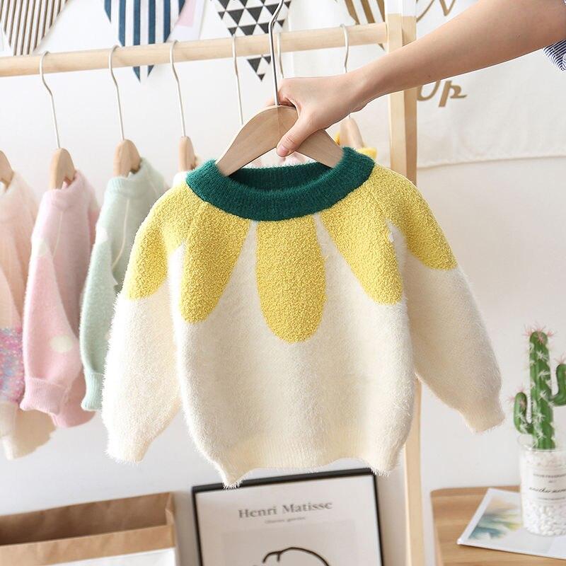 ins hot baby girls sweater 1-7 years old Autumn and winter children's sweater Mohair flower kids sweaters christmas sweaters
