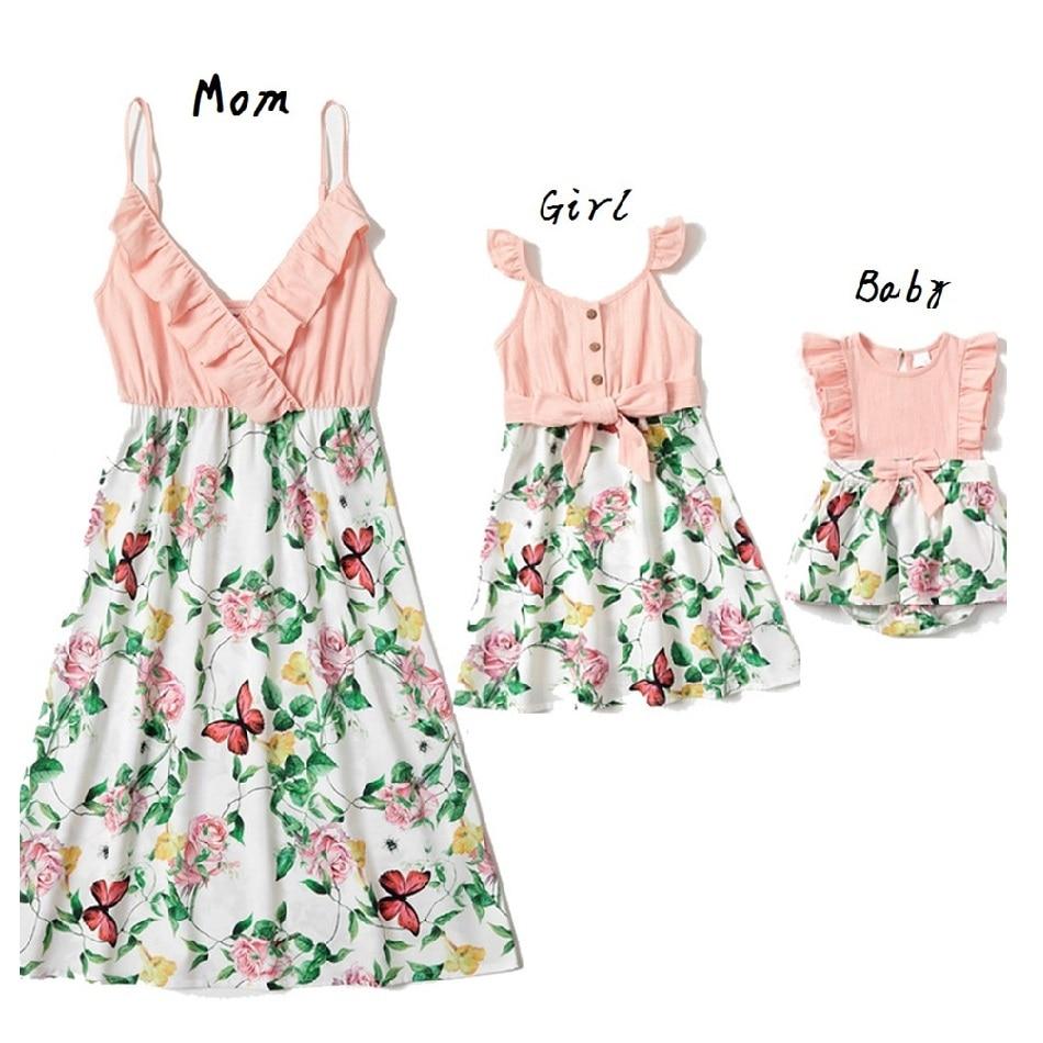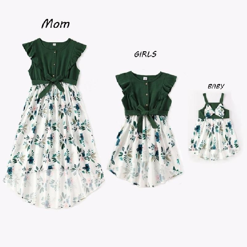 Irregular Mother Daughter Macthing Dresses Family Set Flower Mom Mum Baby Mommy and Me Clothes Fashion Women Girls Cotton Dress