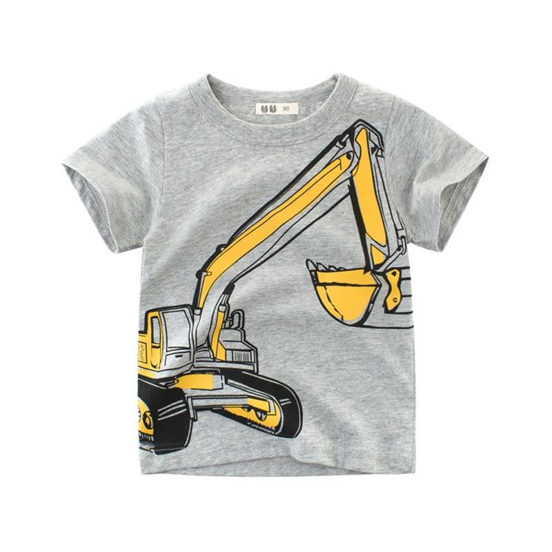 Kids Clothes Summer Boys Short Sleeve T-shirts Tops Children Cotton Excavator Pattern T Shirt Tees 2-8 Years Boy Girl Top