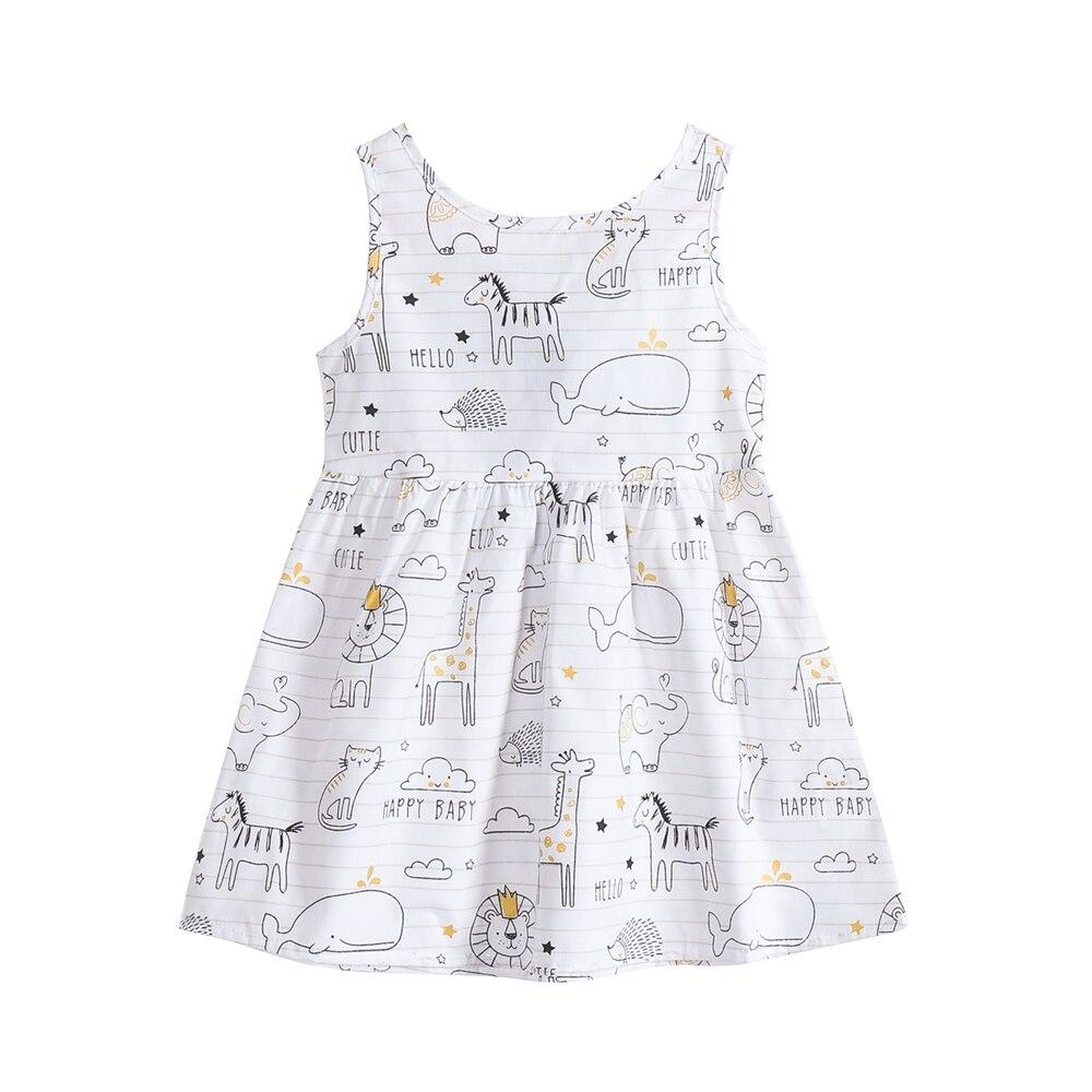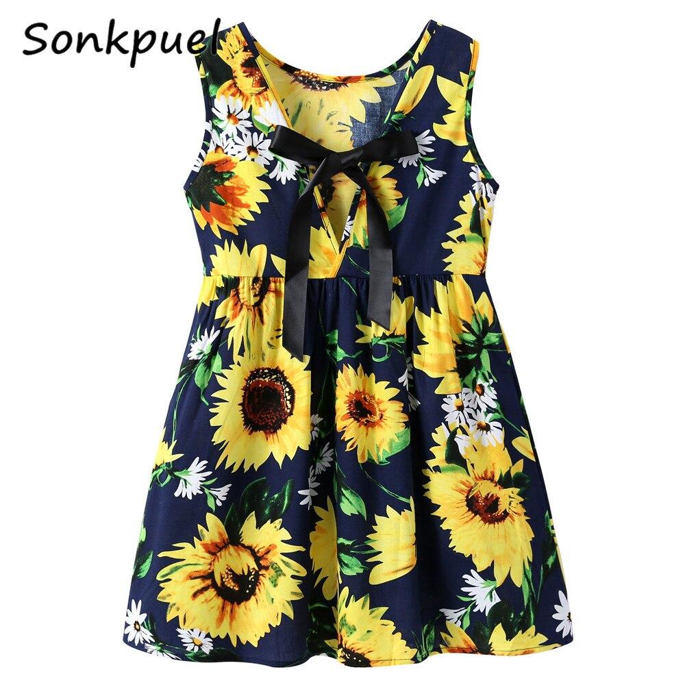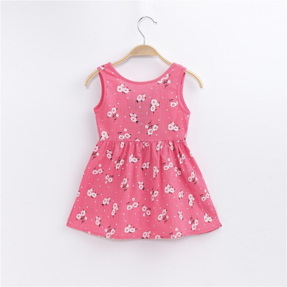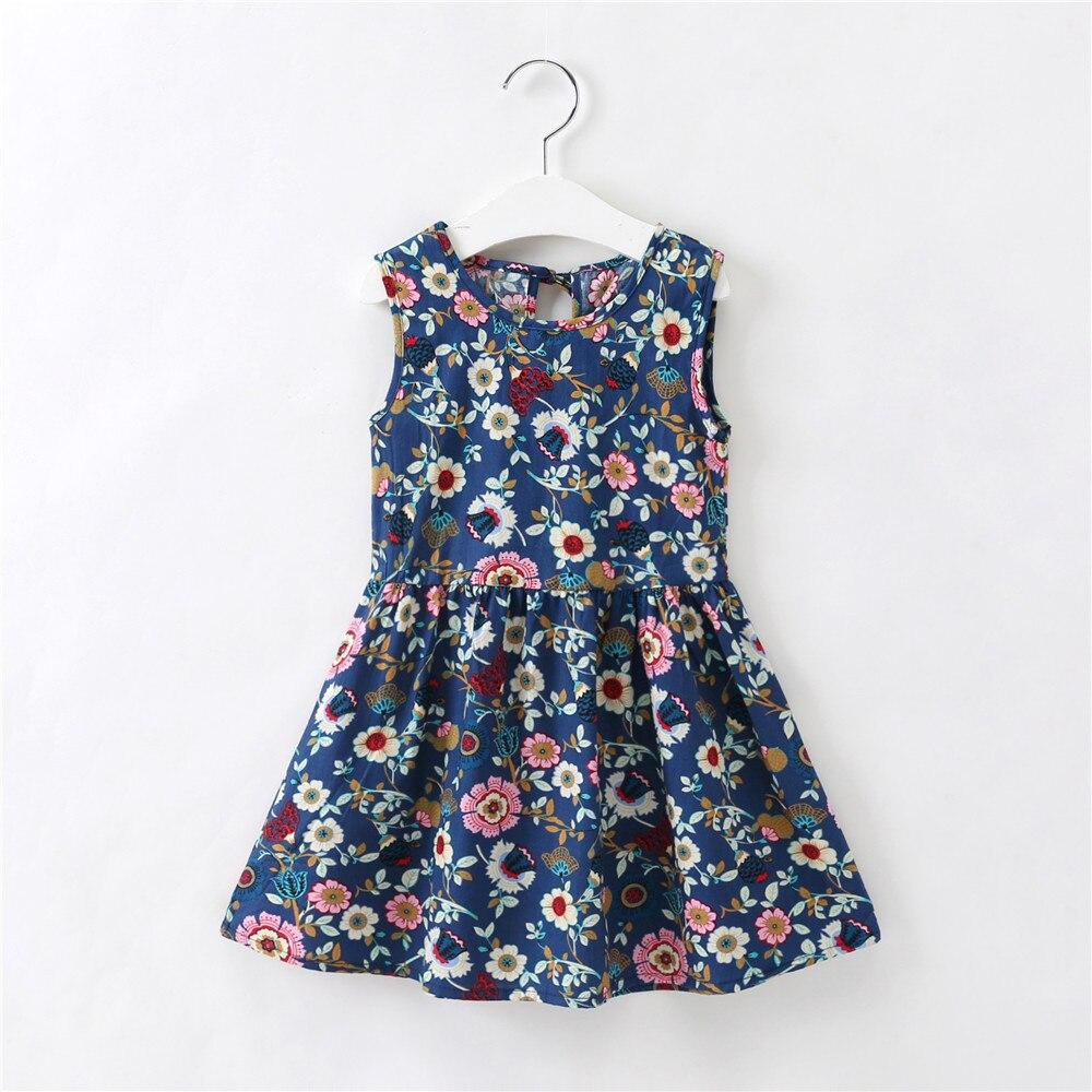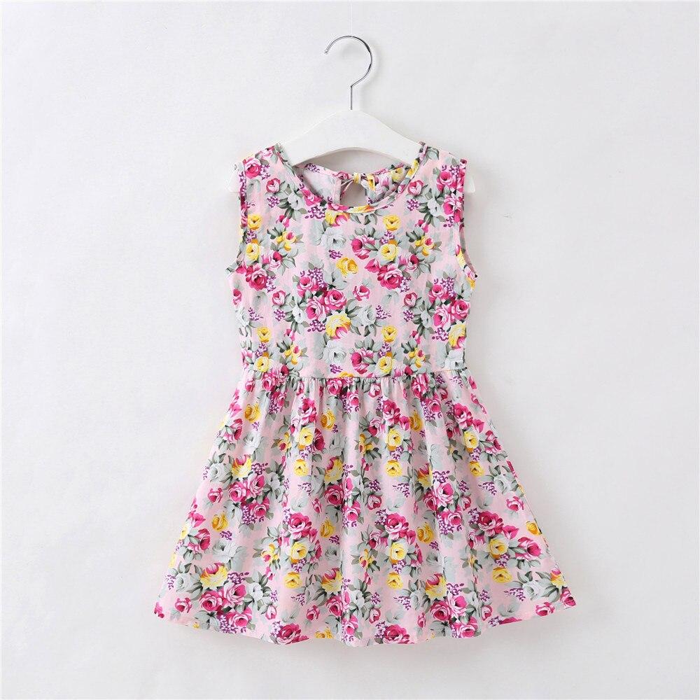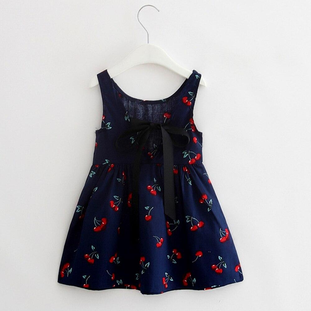 Kids Dress Summer Girl Flower Print Bowknot Back Straps Princess Dress Children Sleeveless Cotton Dresses Baby Girls Clothes