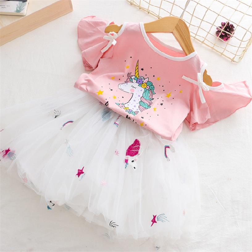 Kids Girls Unicorn Top And Tutu Dress Summer Princess Girl Princess Birthday Party Costume Children Kids Unicorn Clothing Sets