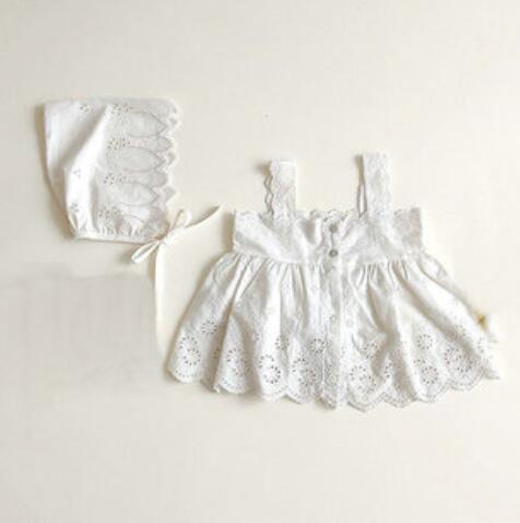 Korean Baby Girls Clothes 2020 Spring Summer Baby Clothing Cotton Camisole and Floral Bodysuits Dress Rompers Cap