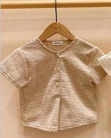 Korean Style 2020 Summer Toddlers Girls Cotton Shirts Ruffles Collar Puff Sleeve Baby Kids Tops Cute Blouses Infants Clothes