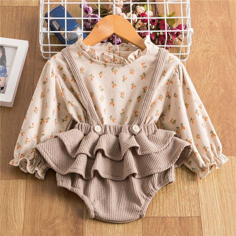 Long Sleeve Girls Spring Clothing Floral 12M Baby Girls Clothes Sets 2pcs Linen Cotton Outfits For Toddler Girls Suspender Skirt