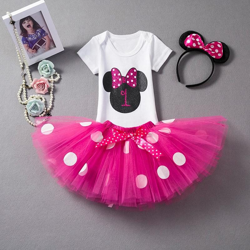 Mini Mouse Baby Girls Dress 1st Baptism Dress For Infant Girl 2 Years Old Baby Kids Clothes Polka Dots Summer Newborn Outfits