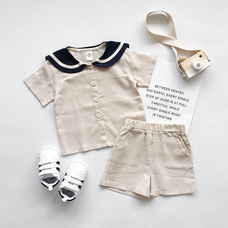 Navy Style Summer Clothes for Boys Girls Outfit Cotton T-Shirt + Shorts 2PCS Baby Kids Elastic Waist Dress Solid 2 3 4 5 6 Years