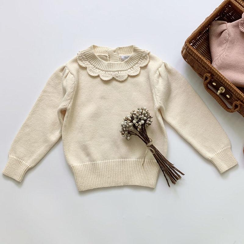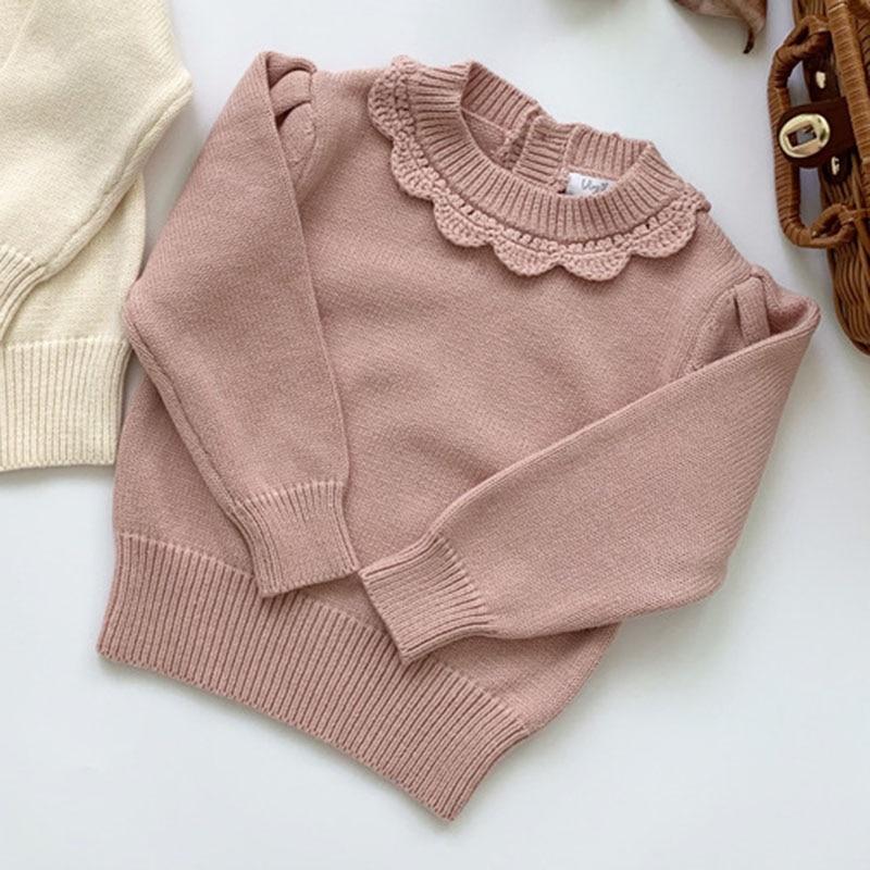 New 2020 Kids Girls Long Sleeve Knit Lace Sweater Autumn Winter Baby Clothing Girls Pullover Sweaters 1-7Yrs