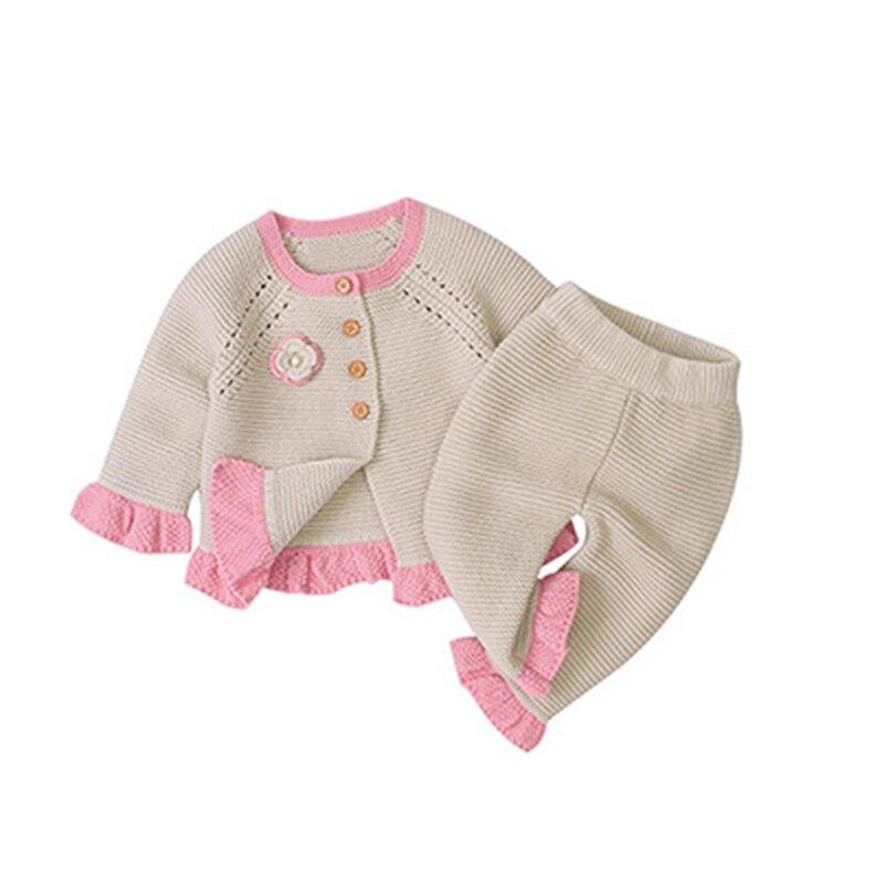 New 2020 Spring Autumn Infant Baby Girls Pure Color Cardigan Coat + Pants+ Hat Clothing Sets Kids Suit Girl Knit Sets Clothes