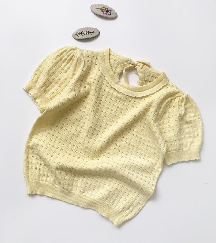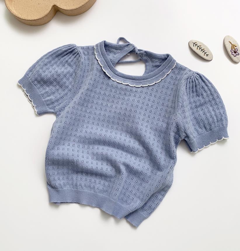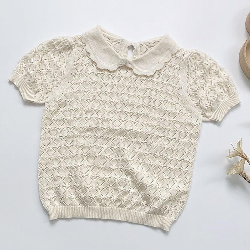 New 2021 Baby Girl Hollow Out T-shirt Summer Kids Girl Short Sleeve Knit T-shirt Infant Kids Baby Girl T-shirt Clothes