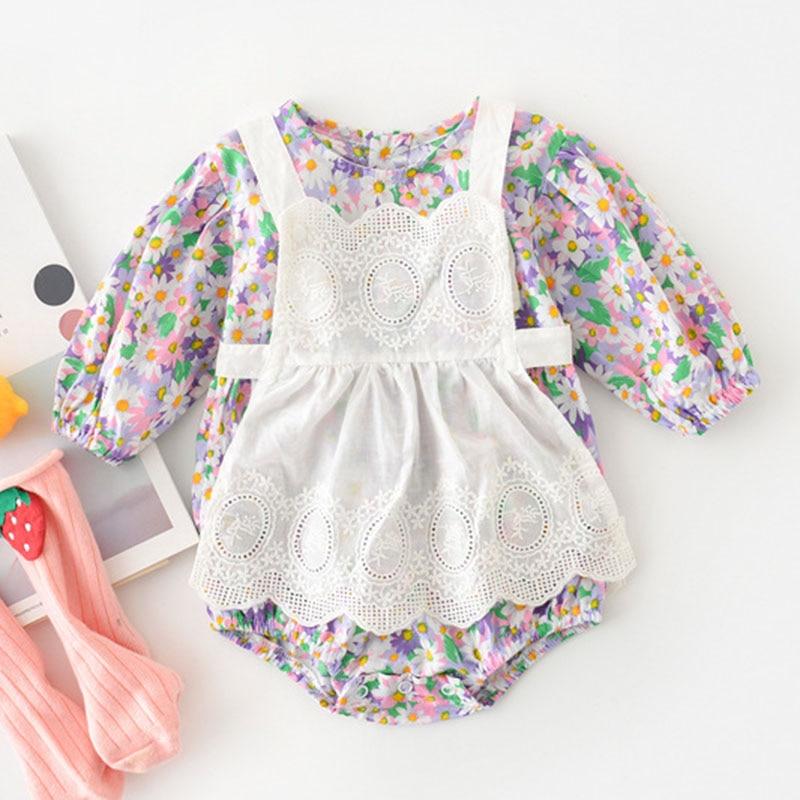 New 2021 Spring Autumn Kids Girl Floral Two Piece Rompers Infant Baby Girl Newborn Rompers Dress Clothes Baby Girl Rompers Dress