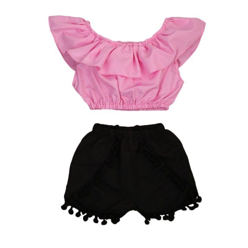 New 2PCS Toddler Infant Child Kids Baby Girl Summer Off Shoulder Top Tank Short Pants Outfit Clothes Set 2-7T