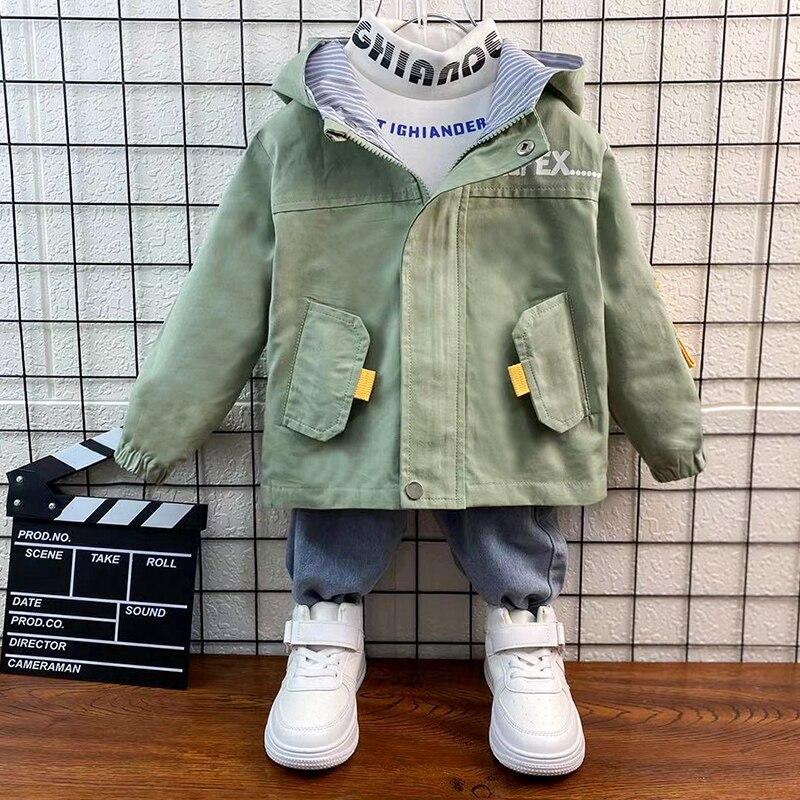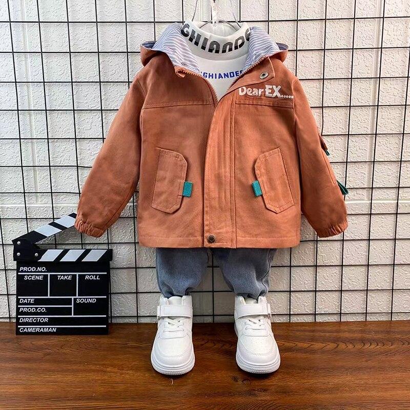 New Boys Hooded Long Sleeve Coats 0-9 Years Old Spring and Autumn Baby Kids Jackets Letter Casual Children's Clothes for Boy