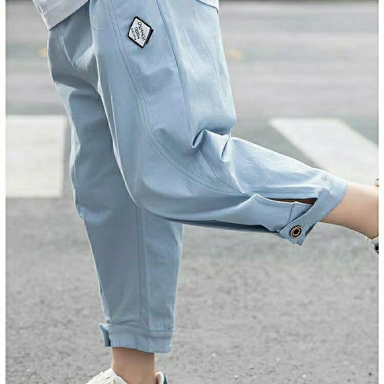 New Summer Boy's Cargo Pants Korean Style Loose Children's Clothing 3-13 Years Old Kids Casual Clothes Solid Ankle-length Pant