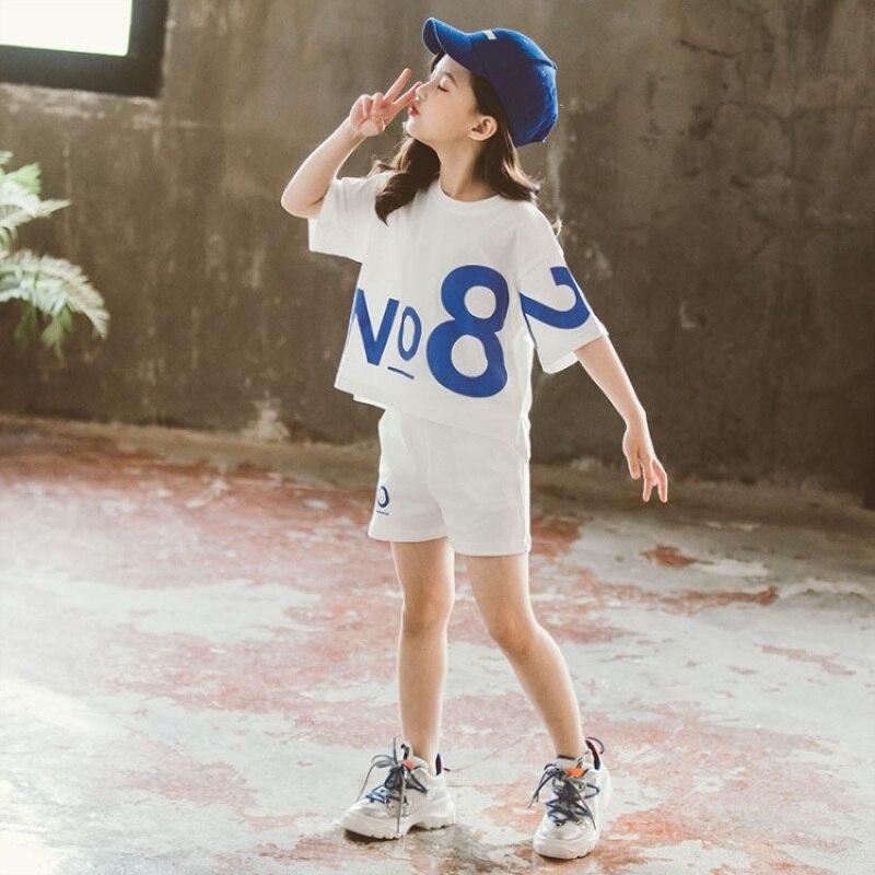 New Two Piece Loose Jacket Spring Autumn Letter T-Shirt Girls Kids Outerwear Teenage Top Children Clothes Shorts School Uniform