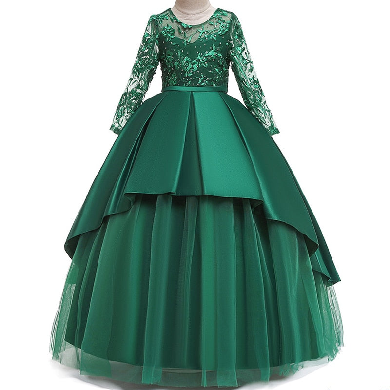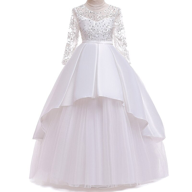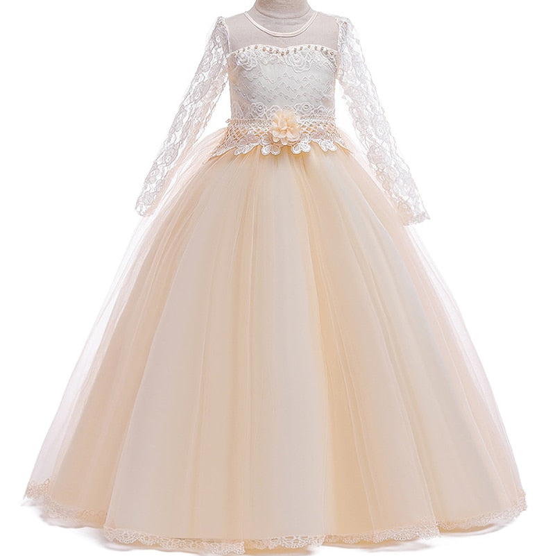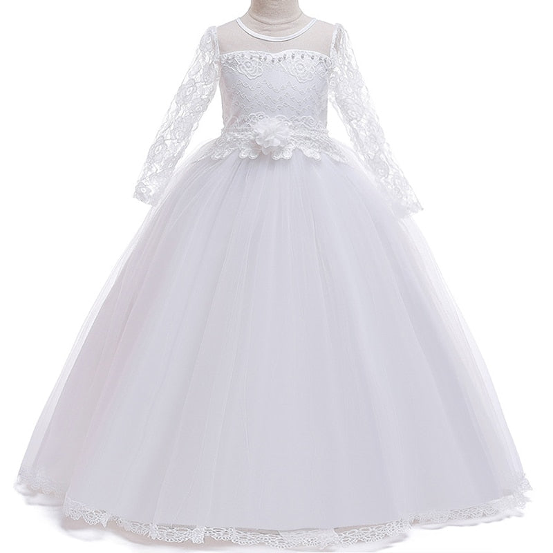 Princess Baby Girls Lace Flower Ball Gown Wedding Bridemaid Dresses For Girls Party Dress First Communion Dress For Baptism