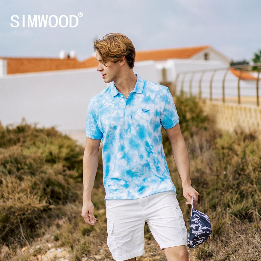 SIMWOOD 2021 summer new polo shirt men fashion tie dyed artful effect 100% cotton plus size brand clothing SJ130176