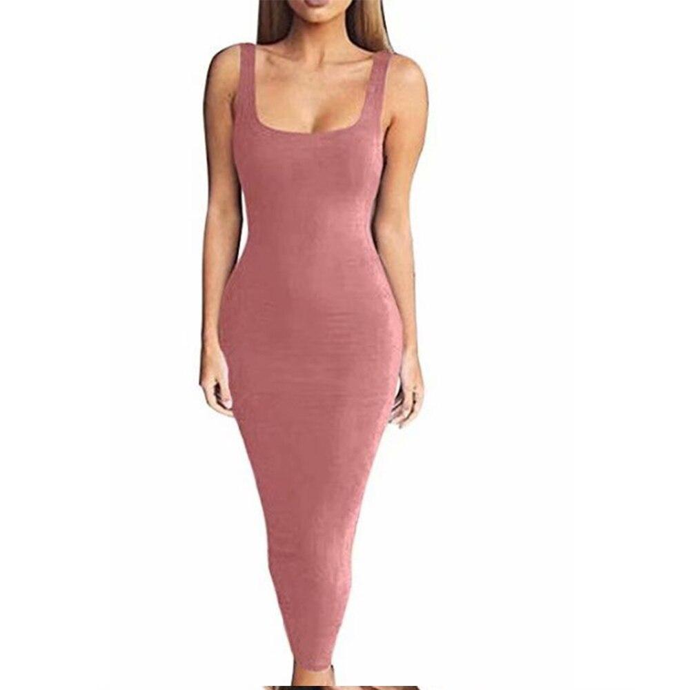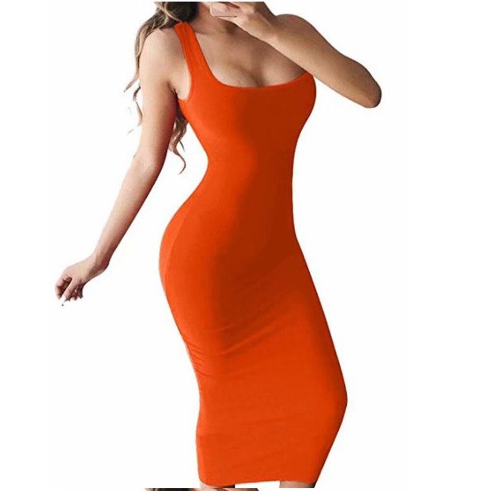 Spaghetti Strap Sexy Bodycon Dress Summer Yellow Green Black Orange Elegant Sleeveless long midi dress club clothes Dress Women
