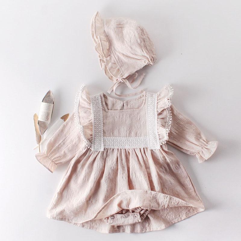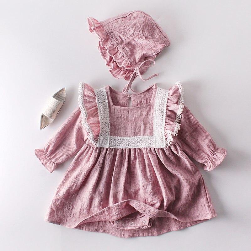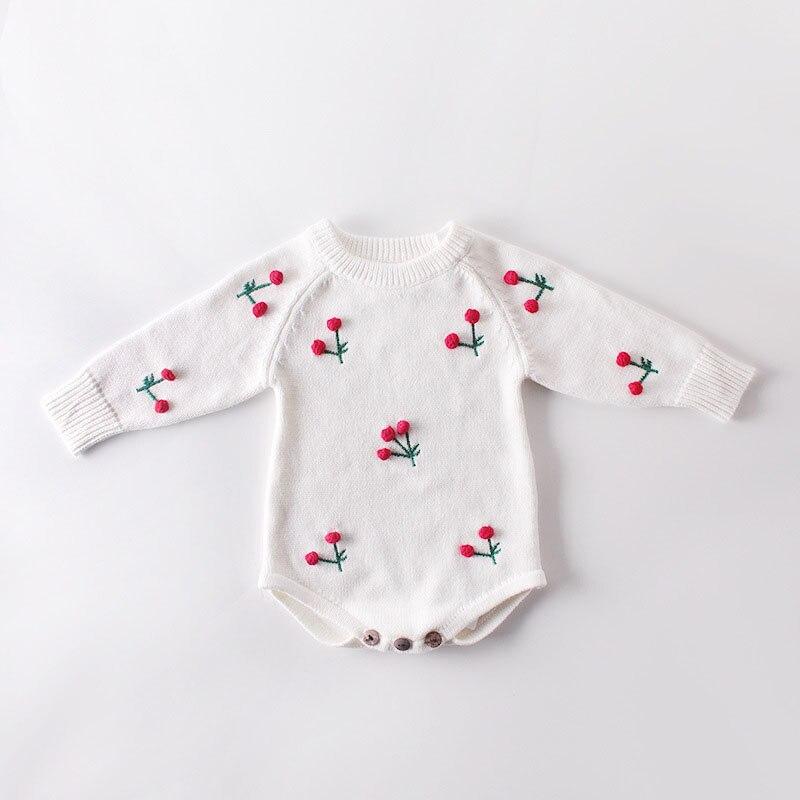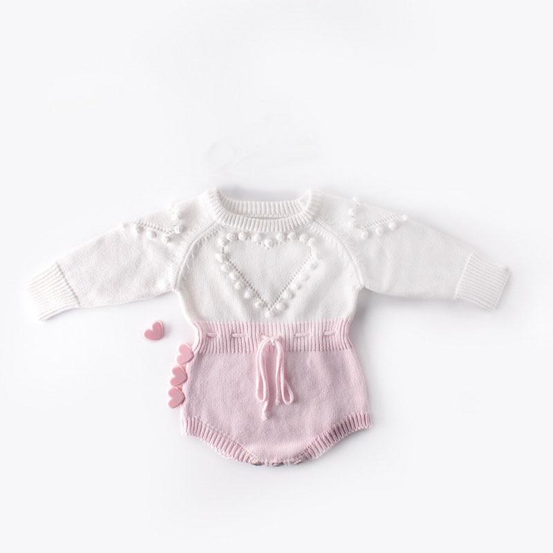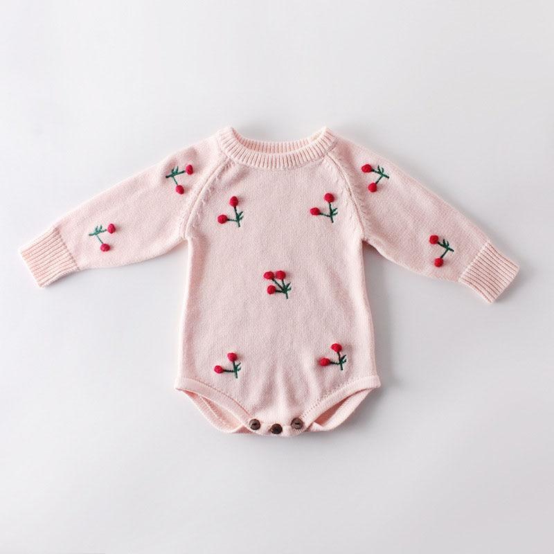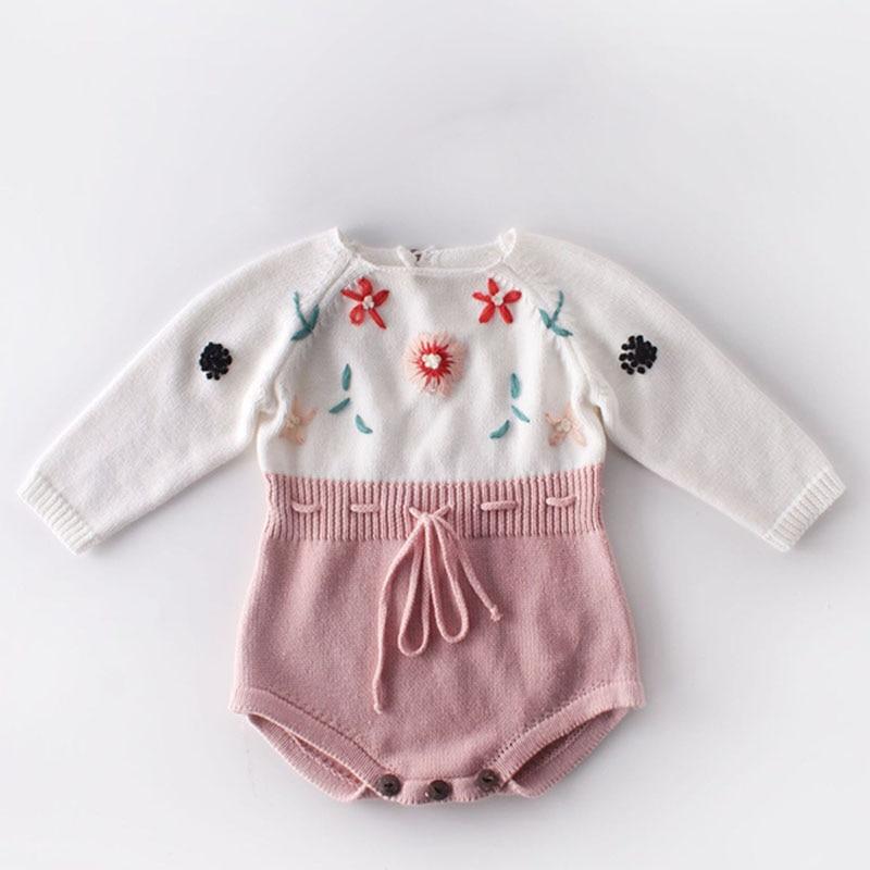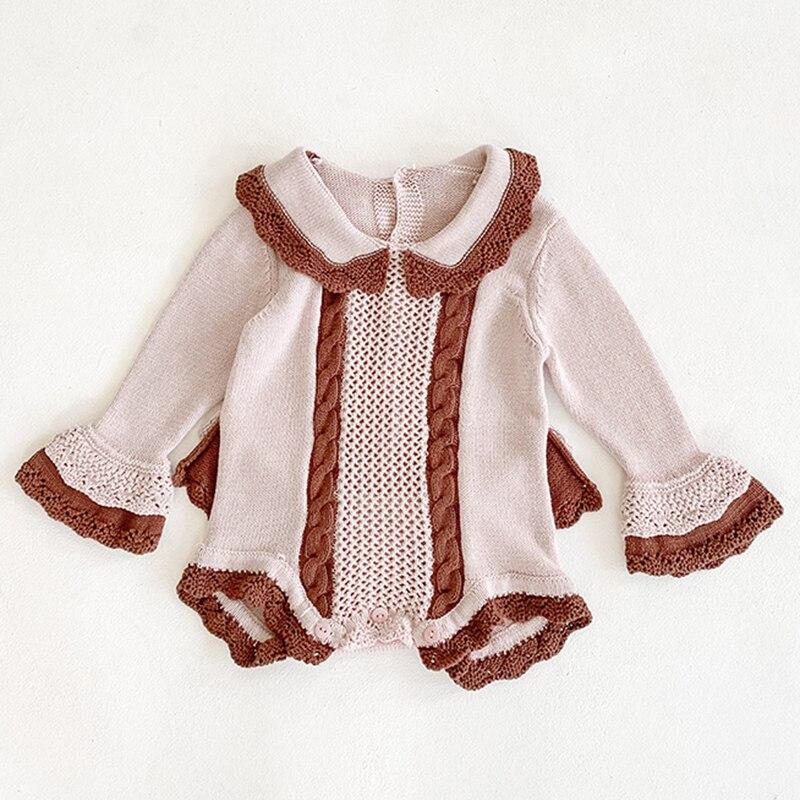 Spring Autumn Newborn Girls Lotus Leaf Collar Floral Jumpsuits Clothes Baby Knit Rompers Knitted Long Sleeve Children Rompers