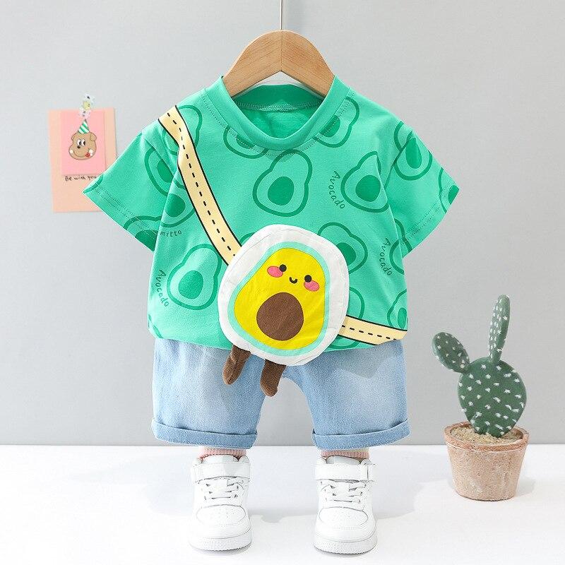 Summer Children Clothes Toddler Boy Short Sleeve Set Cotton Pullover Top 2 Pieces Fashion Novelty Cartoon Fruit Avocado Pattern