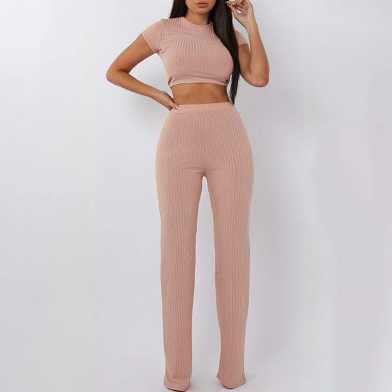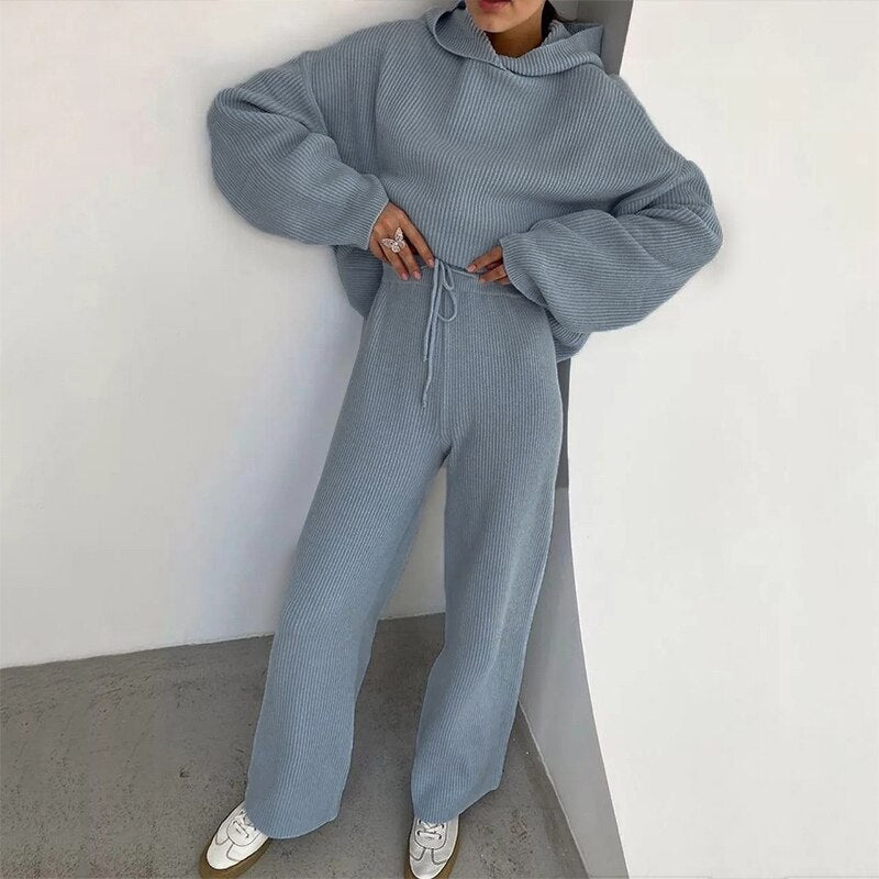 Summer Knitted Sweat Suits Women Matching Sets Long Sleeve Hoodie+wide-legged Pants Loungewear Sweater Set Two Piece Outfits