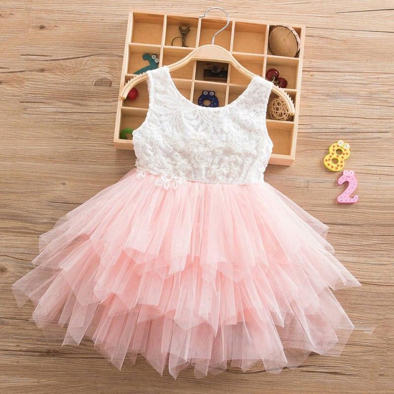 Summer Lace Girl Dress 2021 White Backless Girls Teenage Princess Dress Irregular Tutu 2-8 Years Pink Children Dresses Pink
