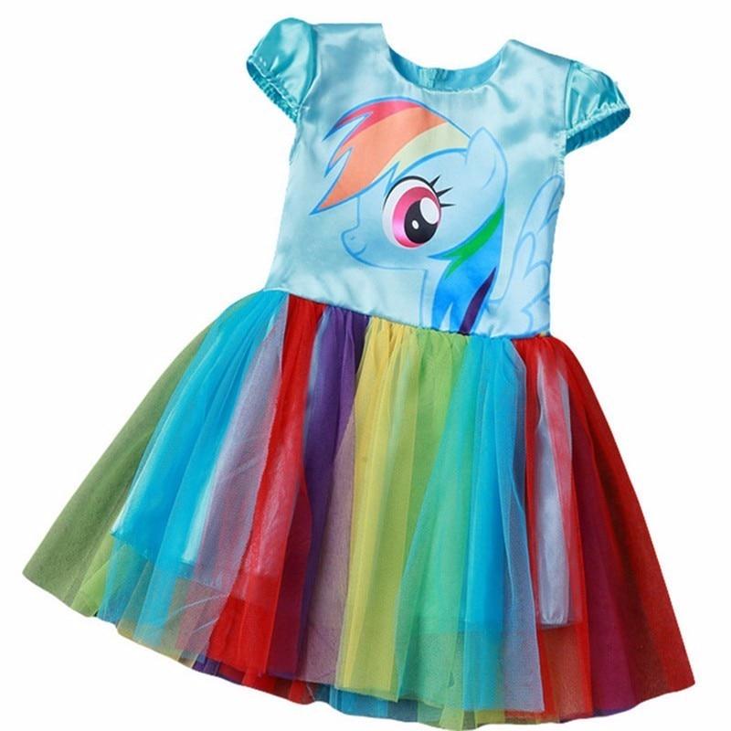 Summer Princess Little Pony Rainbow Dresses For Girls Halloween Birthday Party My Baby Unicorn Vestidos Dress Clothing