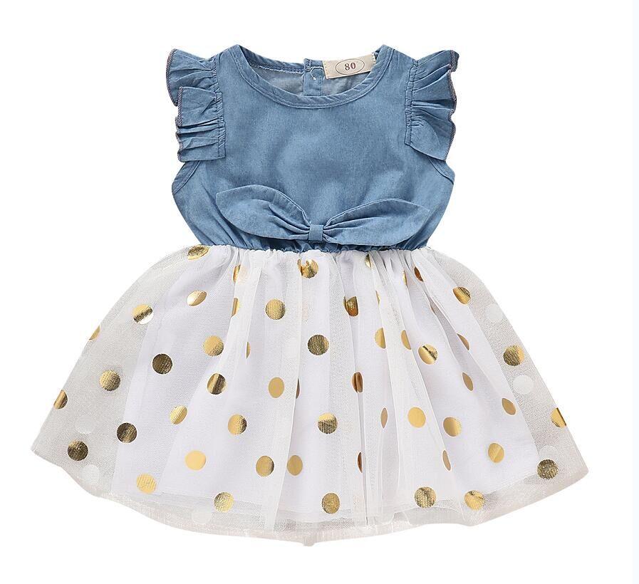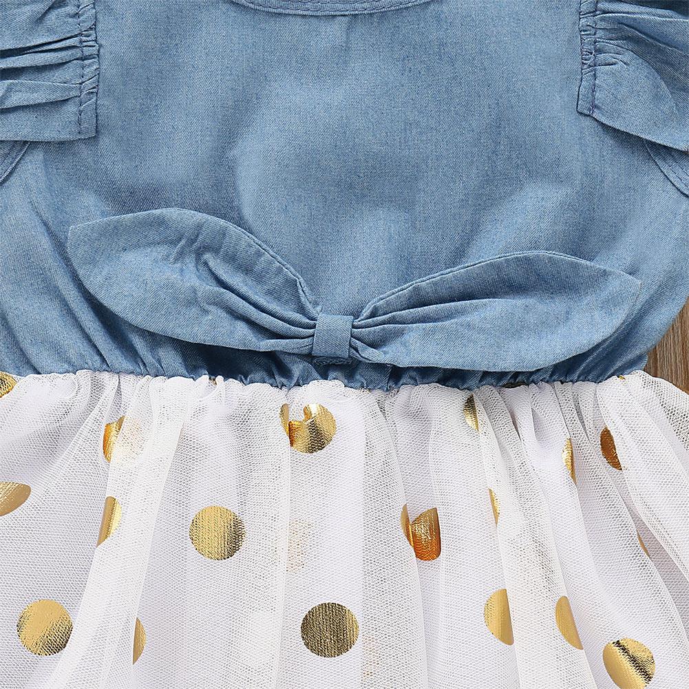 Toddler Kids Baby Girls Princess Summer Floral Dress Baby Kid denim Dresses Lace Tulle Sundress Ruffled Sleeveless Princess Gown
