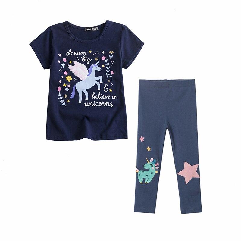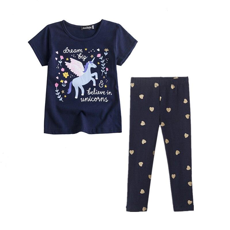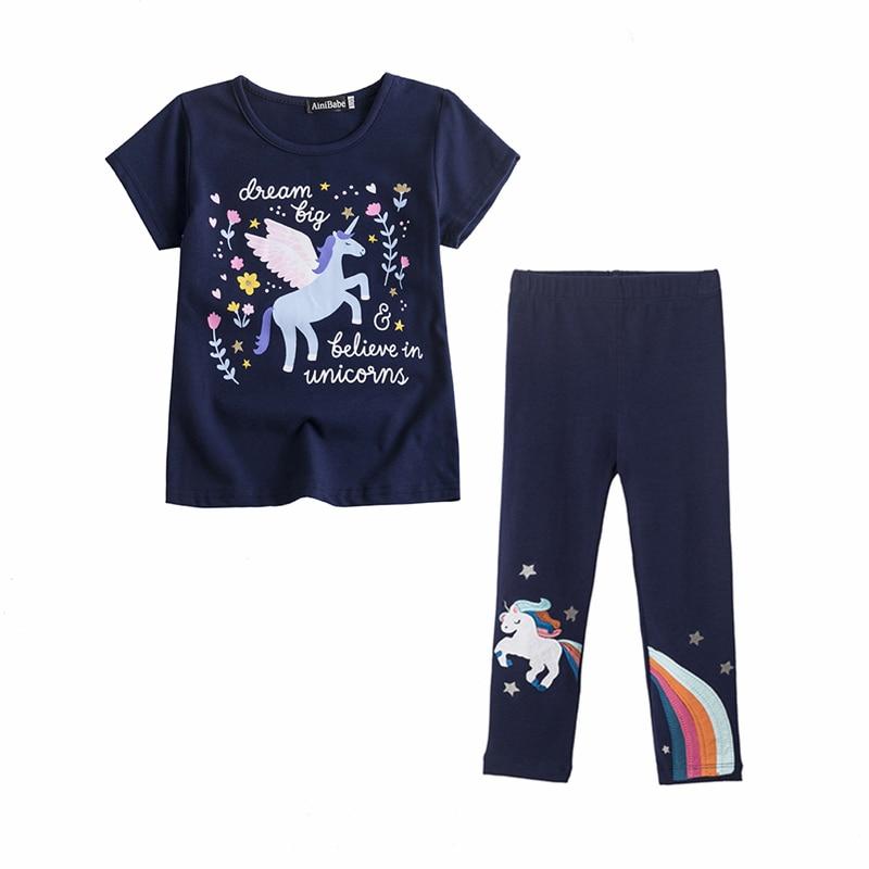 Unicorn Kids Girls Clothes Sets 2PCS Short Sleeve T-Shirt + Long Pants Rainbow Print Elastic Leggings Boys Girls Summer Clothes
