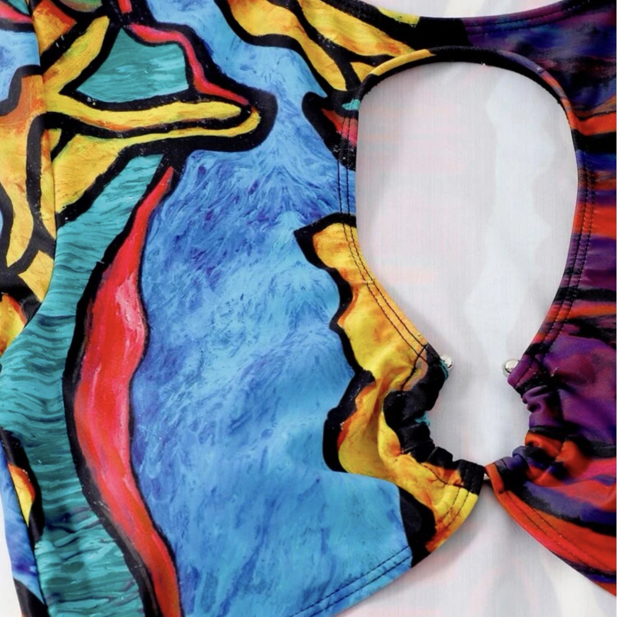 Uveng 2022 Printed Split Hollow Bikini Bikini