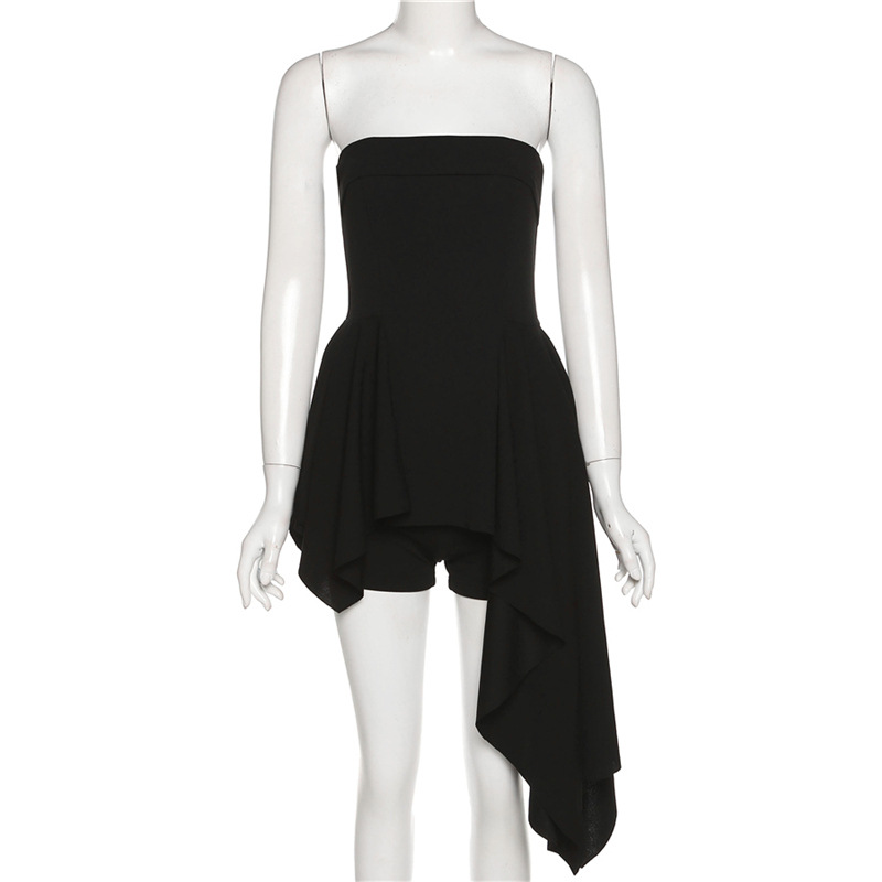 Uveng 2022 Spring And Summer New Women's Pure Color Sexy Word Collar Wrapped Breast Fashion High-Waist Irregular Dress