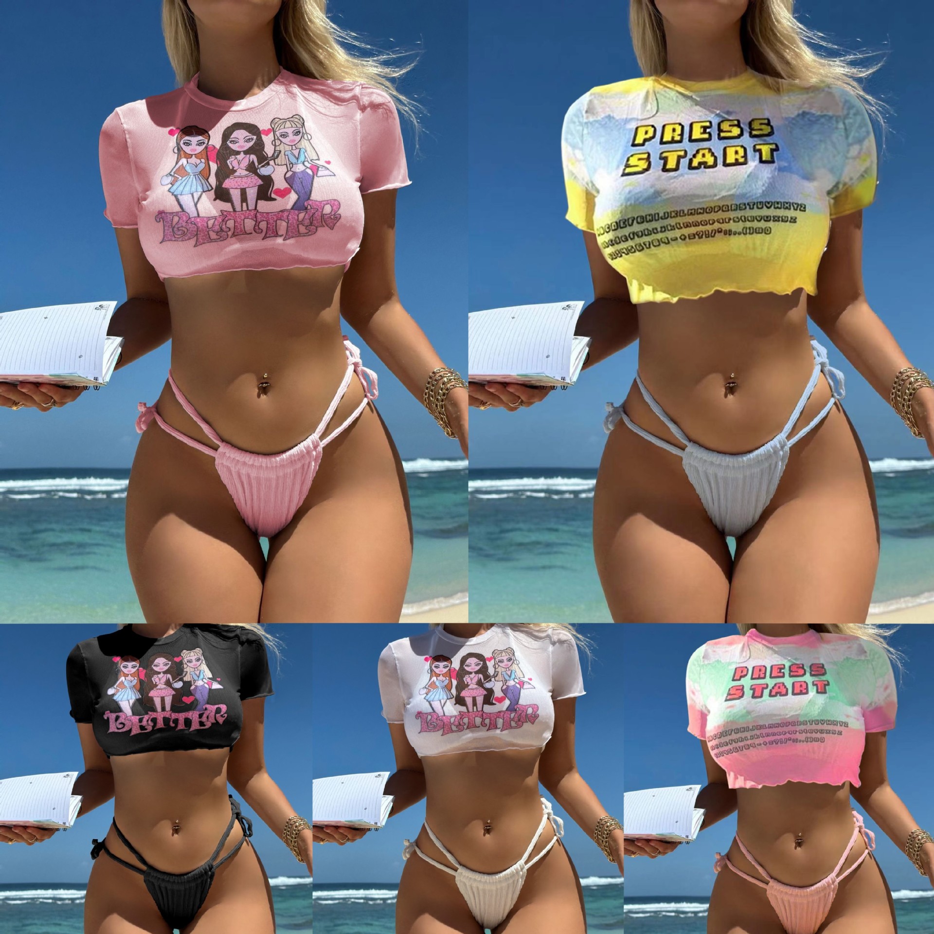 Uveng 2023 New Portrait Print Rope Strap Three-Piece Swimsuit Swimsuit Bikini 9128