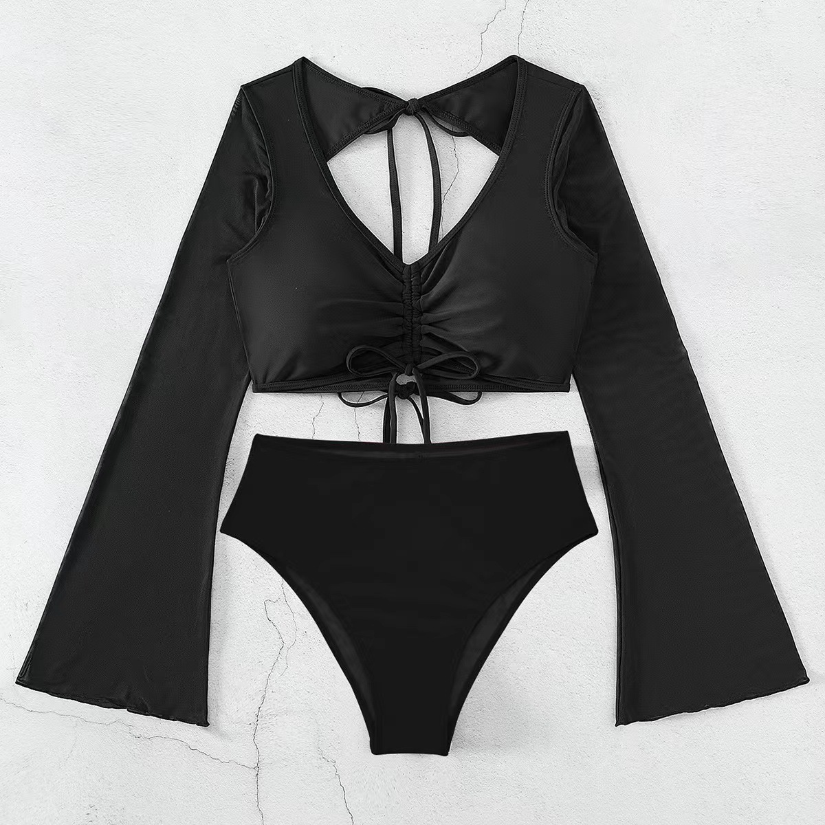 Uveng 2023 New Split-Colored High-Waist Conservative Splicing Yarn Swimsuit Swimsuit