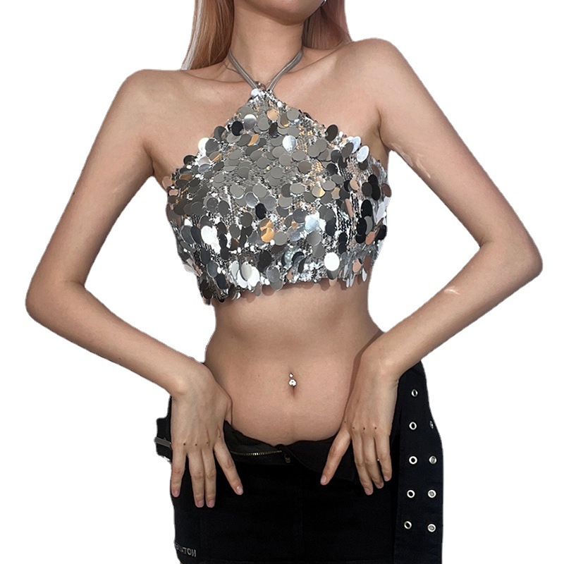 Uveng 2023 Spring And Summer New Women's Fashion Sexy Hanging Neck Bare Back Slit Small Vest Woman