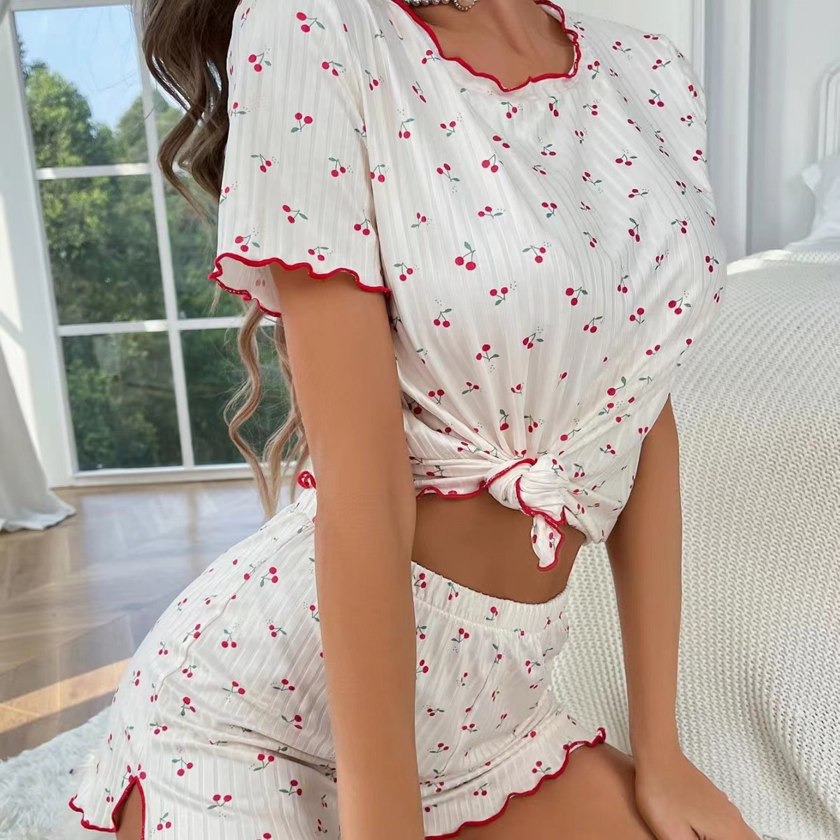 Uveng 2024 New Round-Neck Wooden Ear Short-Sleeved T-Shirt Print Bag Hip Skirt Two-Set