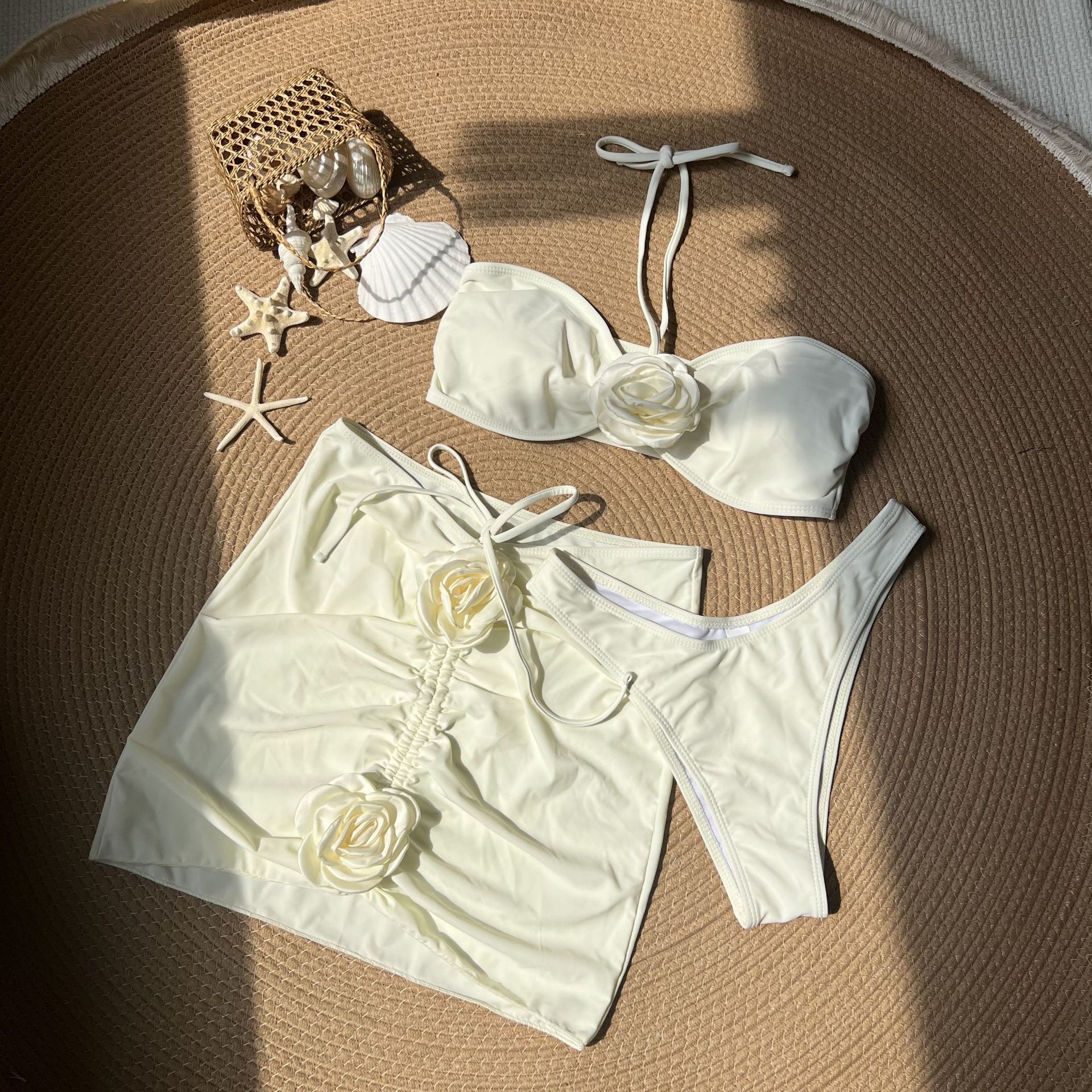 Uveng 2024 New Sexy Rose Slings Solid Three-Piece Set Swimsuit Bikini