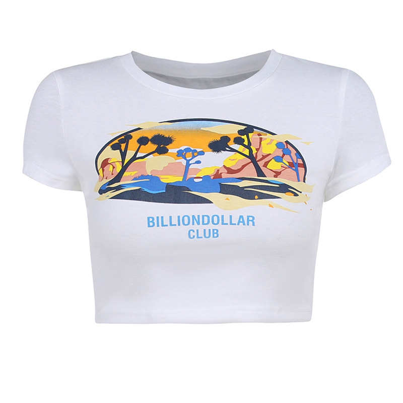 Uveng 2024 Round Collar Print Hottie Short-Sleeved T-Shirt Girl In Niche Summer Dress Short Casual Top