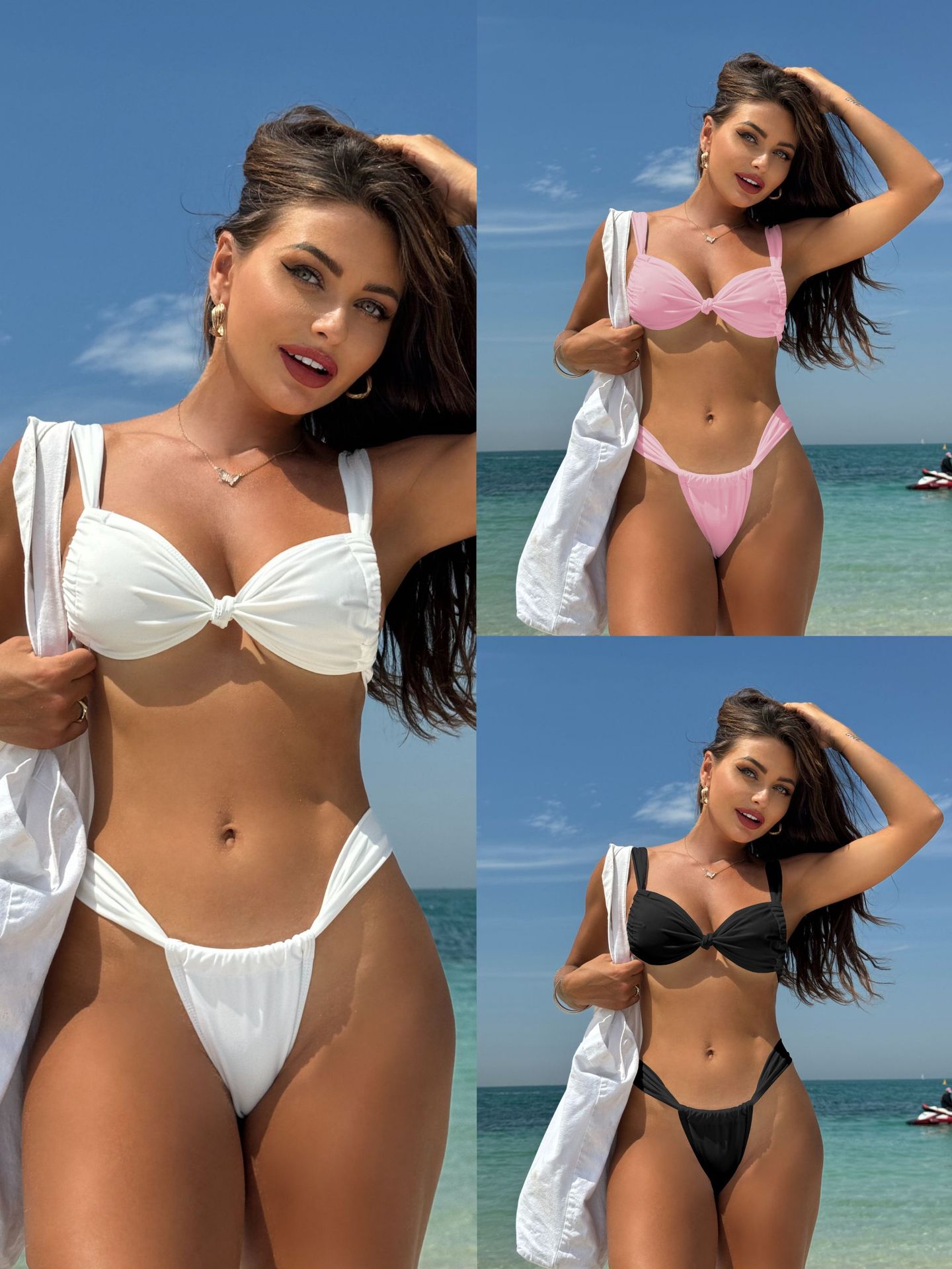 Uveng 2024 Sexy Solid Color New Bonded Belt Swimsuit Bikini