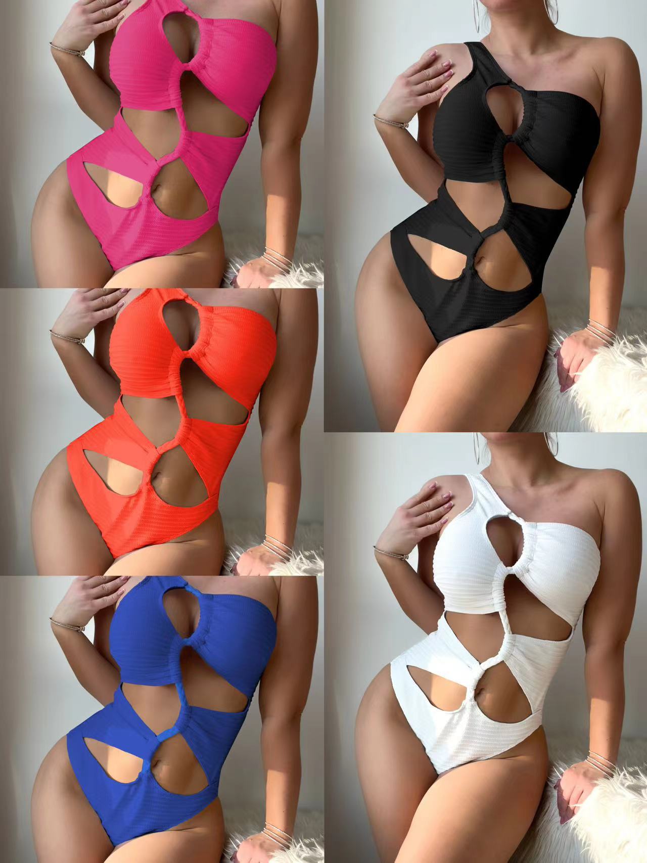 Uveng 2024 Solid Color New Rope-Joined Single-Sone Swimsuit Swimsuit Bikini