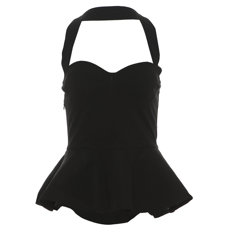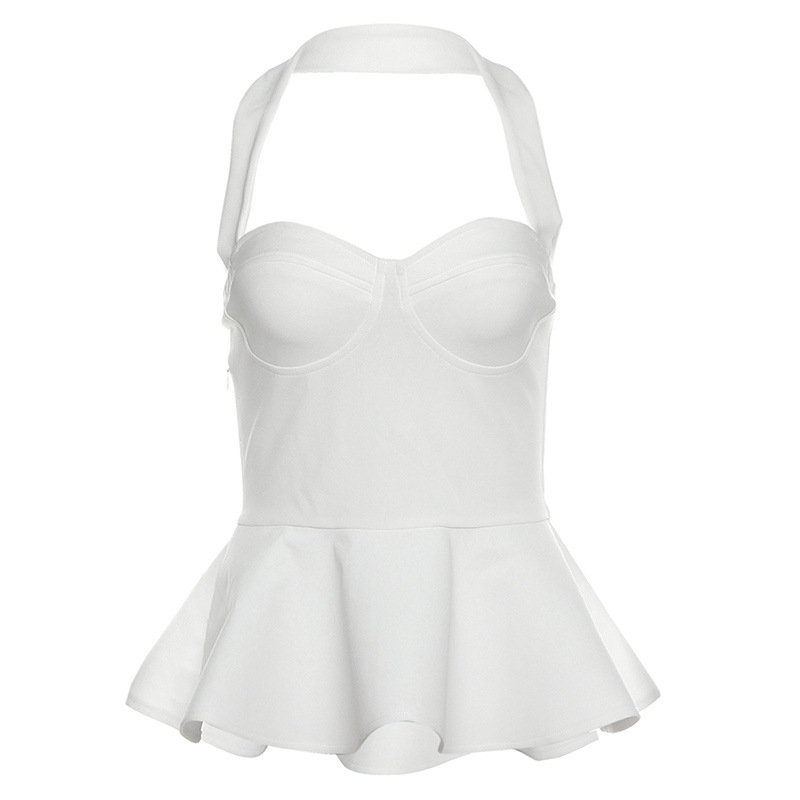 Uveng 2024 Summer New Women's Clothing Fresh Sweet Wrapped Breasts To Repair The Leaves On The Side Of The Solid Color Hanging Neck Vest