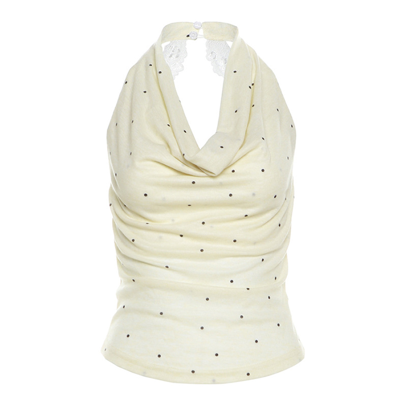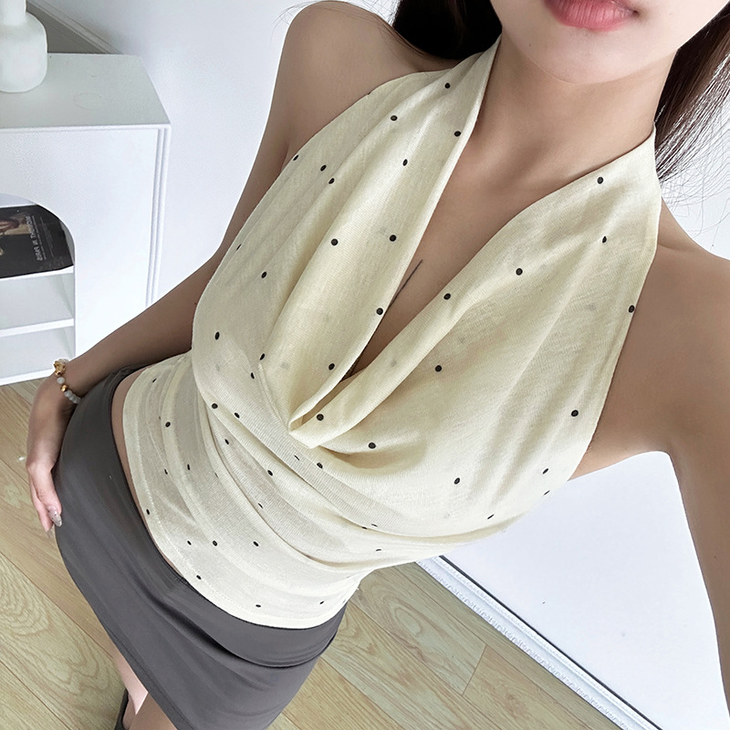 Uveng 2024 Summer New Women's Clothing Pure Lust Wind Collar Hanging Neck Elegant Wave Dot Small Vest